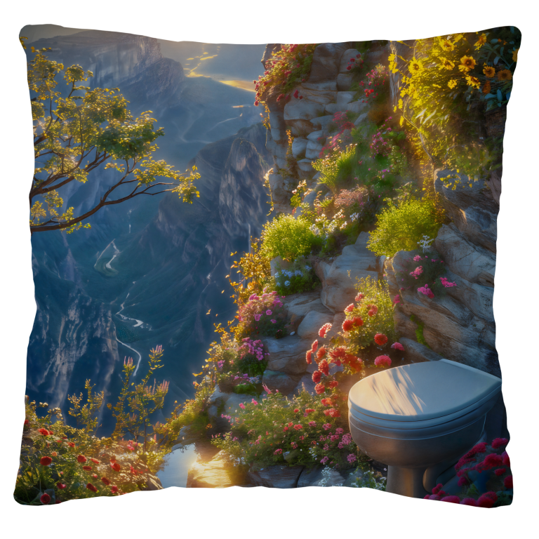 S(h)itting with a View is een humoristisch maar adembenemend kunstwerk dat een eenzame WC troont op de rand van een majestueus berglandschap. Omringd door weelderige bloemen en zonovergoten rotsen, biedt deze unieke troon een ongeëvenaard uitzicht op een diep dal en een spectaculaire zonsondergang. De combinatie van de serene natuur en de onverwachte aanwezigheid van het toilet creëert een speelse balans tussen verwondering en hilariteit, waardoor dit kunstwerk zowel rustgevend als geestig aanvoelt.