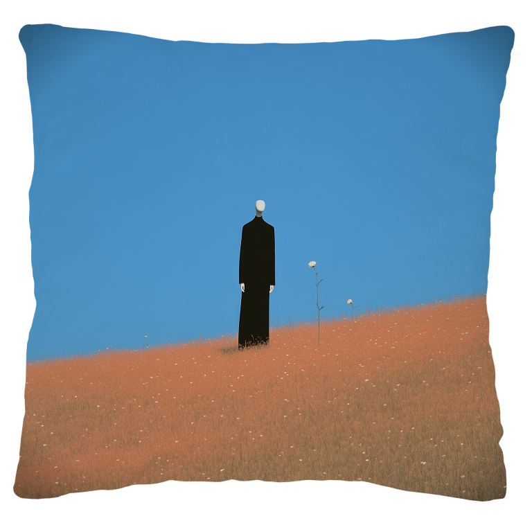 Man in a Field toont een mysterieuze figuur in zwarte gewaden die eenzaam staat in een gouden graanveld onder een heldere blauwe hemel. De minimalistische compositie en het sterke kleurcontrast creëren een gevoel van isolatie en contemplatie. Dit intrigerende beeld roept vragen op over identiteit, eenzaamheid en de menselijke conditie. Perfect voor liefhebbers van conceptuele kunst die houden van visuele verhalen met ruimte voor eigen interpretatie.