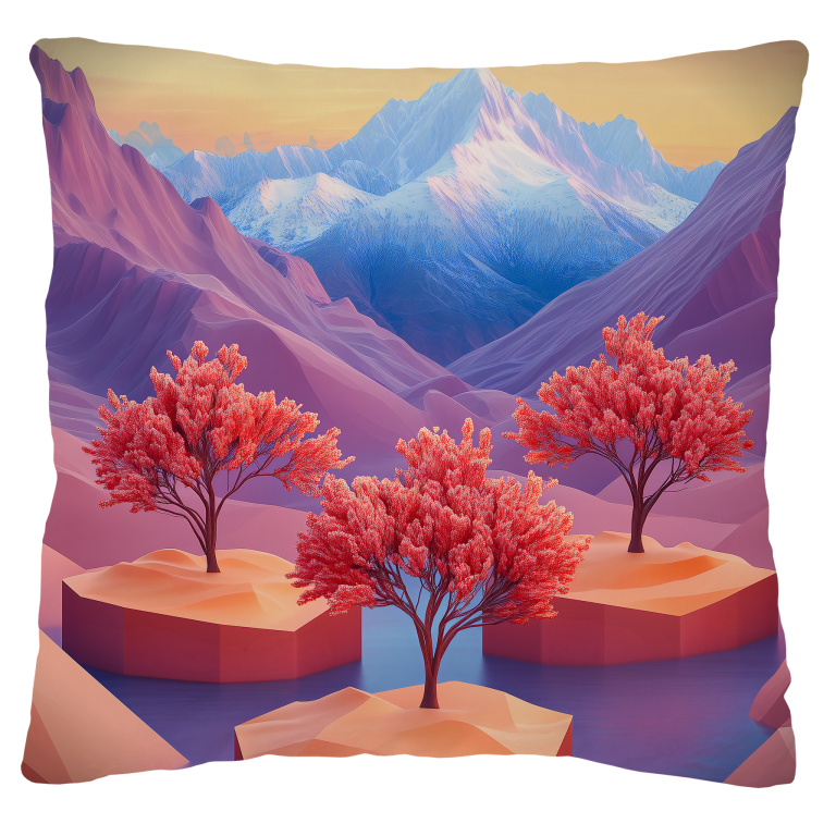 Three Trees toont een surrealistisch berglandschap waar drie prachtige koraalkleurige bomen groeien op geometrische eilandjes in kristalhelder water. De pastelkleuren van roze, blauw en oranje creëren een dromerige atmosfeer waarin natuurlijke schoonheid en abstracte vormgeving samenkomen. Dit fantasierijke landschap straalt sereniteit en creativiteit uit, perfect voor moderne interieurs die verlangen naar een vleugje magie. Een inspirerend kunstwerk dat de verbeelding prikkelt en elke ruimte transformeert.