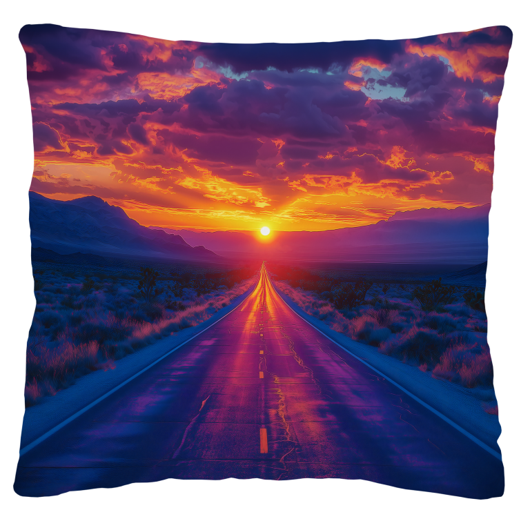 Sunset Road vangt het magische moment waarop de zon de horizon kust en de eindeloze weg in gouden en paarse tinten baadt. De dramatische wolkenformaties en het perfecte perspectief nodigen uit tot dromen over verre reizen en nieuwe avonturen. Dit inspirerende landschap symboliseert hoop, vrijheid en de belofte van wat achter de horizon ligt. Perfect voor avonturiers en dromerige zielen die verlangen naar de open weg en eindeloze mogelijkheden.