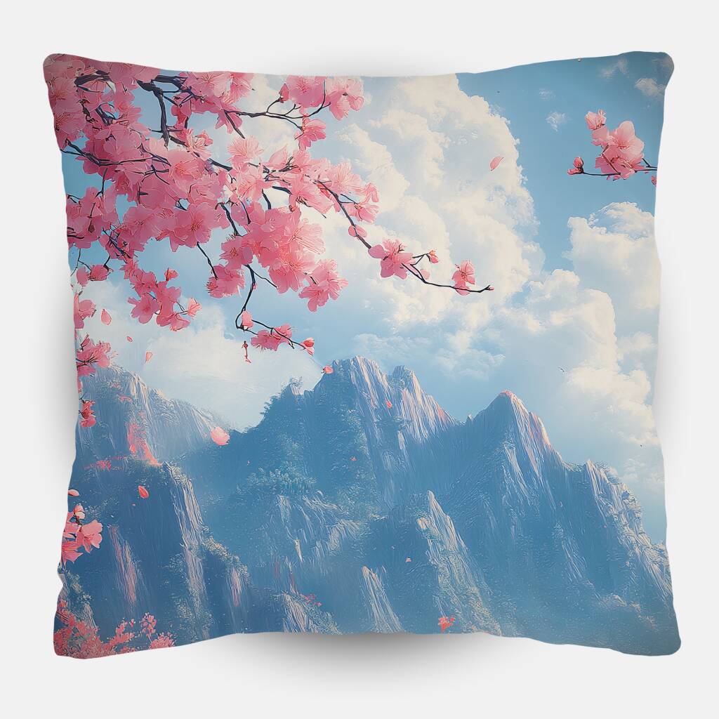 Peaceful Valley toont een betoverend Aziatisch landschap waarin een serene rivier zich slingert door een vallei vol roze kersenbloesems. De traditionele tempels en paviljoens nestelen zich harmonieus tussen de bloeiende bomen, terwijl majestueuze bergen zich verheffin in de mistige verte. De zachte pastelkleuren en de dromerige atmosfeer creëren een gevoel van pure tranquilliteit en spirituele rust. Dit poëtische kunstwerk brengt de tijdloze schoonheid van de Oosterse natuur en architectuur in een perfect evenwicht van sereniteit en elegantie.