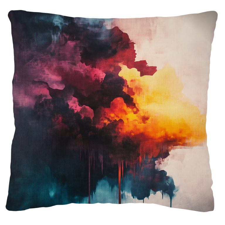 Leaking Clouds presenteert een dramatisch hemels schouwspel waar kleuren als vloeibare emoties naar beneden druipen. Diepe turquoise wolken versmelten met vurige oranje en rode tinten, terwijl donkere verfstrepen de illusie van regen creëren die uit de hemel lekt. Het werk balanceert tussen abstractie en figuratie, waarbij de wolkenformaties zowel herkenbaar als vervreemdend zijn. De verticale druppels voegen een gevoel van beweging en vergankelijkheid toe, alsof we getuige zijn van een hemel die smelt onder het gewicht van zijn eigen schoonheid. Dit kunstwerk verkent de grens tussen controle en chaos, tussen het natuurlijke en het surrealistische. Een krachtig visueel statement dat de vluchtigheid van natuurfenomenen vangt in een moment van artistieke expressie.