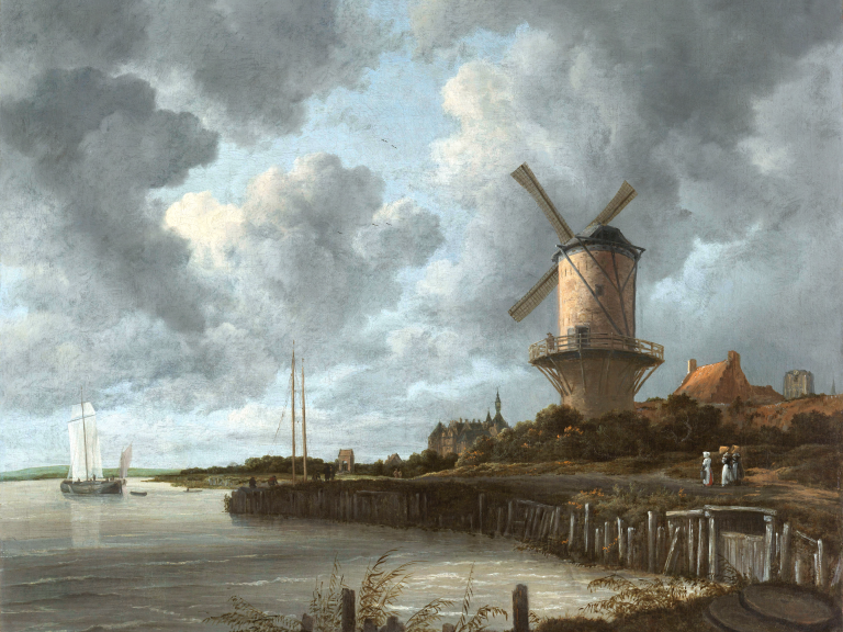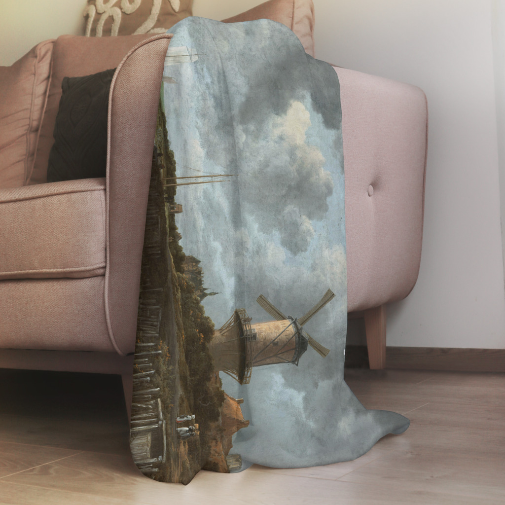 Deze meesterlijke reproductie van De molen bij Wijk bij Duurstede, geschilderd door Jacob Isaacksz van Ruisdael, vangt de grootsheid van het Nederlandse landschap. De imposante windmolen torent hoog boven de omgeving uit, terwijl de dramatische wolkenlucht en het spel van licht en schaduw een bijna tijdloze sfeer creƫren. De zachte weerspiegeling op het water en de subtiele details, zoals de schepen en wandelende figuren, maken dit kunstwerk tot een icoon van de Hollandse Gouden Eeuw. Een klassieke toevoeging aan elk interieur, perfect voor liefhebbers van landschapsschilderkunst en historische esthetiek.