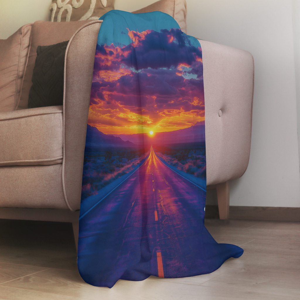 Sunset Road vangt het magische moment waarop de zon de horizon kust en de eindeloze weg in gouden en paarse tinten baadt. De dramatische wolkenformaties en het perfecte perspectief nodigen uit tot dromen over verre reizen en nieuwe avonturen. Dit inspirerende landschap symboliseert hoop, vrijheid en de belofte van wat achter de horizon ligt. Perfect voor avonturiers en dromerige zielen die verlangen naar de open weg en eindeloze mogelijkheden.