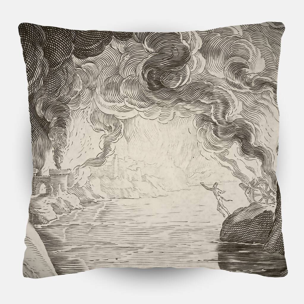 De vier vallers: Ixion toont het dramatische moment van Ixions eeuwige straf uit de Griekse mythologie. De gravure vangt de koning van de Lapiths in zijn val, voor eeuwig gebonden aan een vlammend wiel dat door de hemelen rolt. Zijn gespierde lichaam kronkelt in pijn en wanhoop, terwijl wolken en vlammen hem omringen in een wervelende compositie van goddelijke vergelding. Dit meesterwerk uit de barok illustreert het thema van hoogmoed en straf - Ixion werd gestraft voor zijn poging Hera te verleiden. De dynamische compositie, met zijn dramatische licht-donker contrasten en emotionele intensiteit, maakt dit tot een krachtig voorbeeld van mythologische verbeelding in de kunst. Een tijdloos werk dat de fragiele grens tussen menselijke ambitie en goddelijke gerechtigheid verkent.