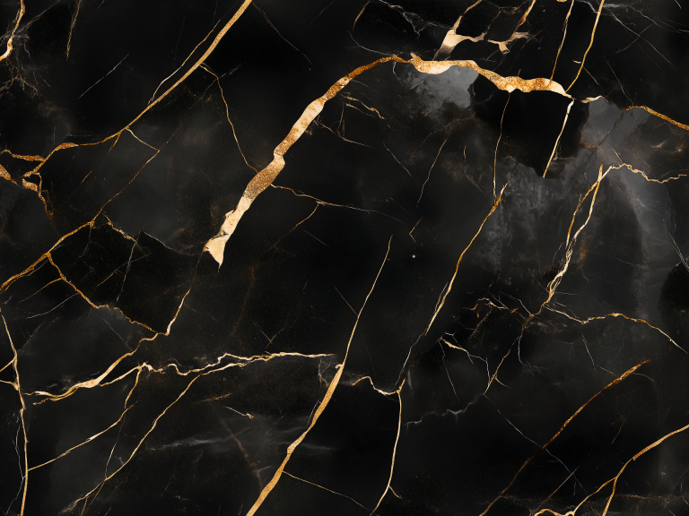 Black Gold Marble brengt de tijdloze elegantie van natuursteen in een verfijnde, luxueuze compositie. Het diepe zwarte marmer wordt dooraderd met goudkleurige lijnen die als bliksemschichten door het oppervlak dansen, waarbij elke breuk en barst een uniek patroon vormt. De glanzende textuur en de organische vormen creƫren een gevoel van exclusiviteit en sophisticatie. Dit design voegt een vleugje glamour toe aan elke moderne ruimte en straalt pure luxe uit.