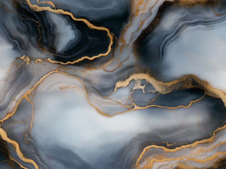 White Gray Gold Marble transformeert de natuurlijke schoonheid van marmer tot een luxueus kunstwerk. Vloeiende lagen van zuiver wit tot diep antraciet worden doorsneden door glinsterende gouden aders die als bliksemschichten door het oppervlak schieten. De organische patronen vertellen het verhaal van geologische krachten die door de millennia heen deze natuurlijke kunstwerken hebben gevormd. Het metallic goud vangt het licht op verschillende manieren, waardoor het werk voortdurend van karakter verandert afhankelijk van het gezichtspunt. Deze elegante compositie brengt de grandeur van exclusief natuursteen naar moderne interieurs, waarbij de tijdloze schoonheid van marmer wordt verheven tot contemporary art. Een statement piece dat luxe en natuurlijke elegantie uitstraalt.