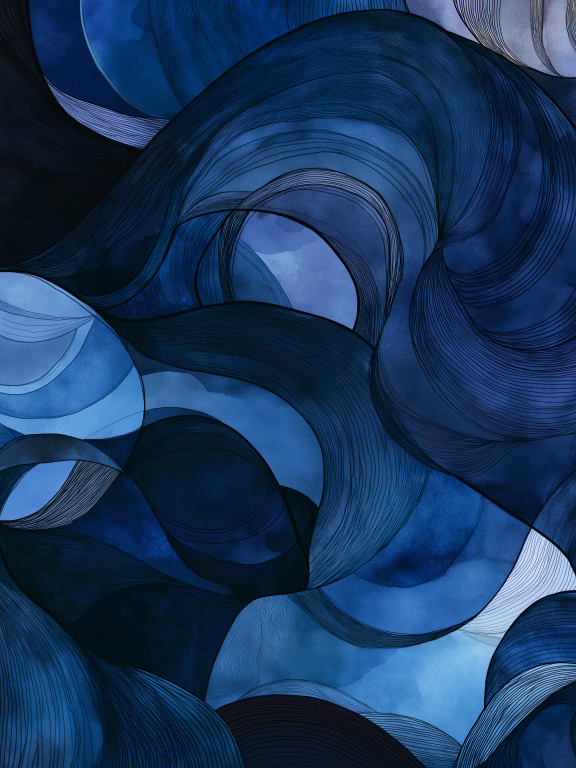 Interconnected Blues toont een hypnotiserende abstracte compositie waarin verschillende blauwtinten door elkaar heen vloeien als golven in een eindeloze dans. De vloeiende lijnen en organische vormen creƫren een gevoel van beweging en diepte, waarbij elke curve naadloos overgaat in de volgende. De monochrome kleurenpalet van diep marineblauw tot licht lavendel geeft het kunstwerk een rustgevende, meditatieve kwaliteit. Dit elegante design brengt rust en harmonie in elke ruimte en symboliseert de verbondenheid van alle dingen in de natuur.