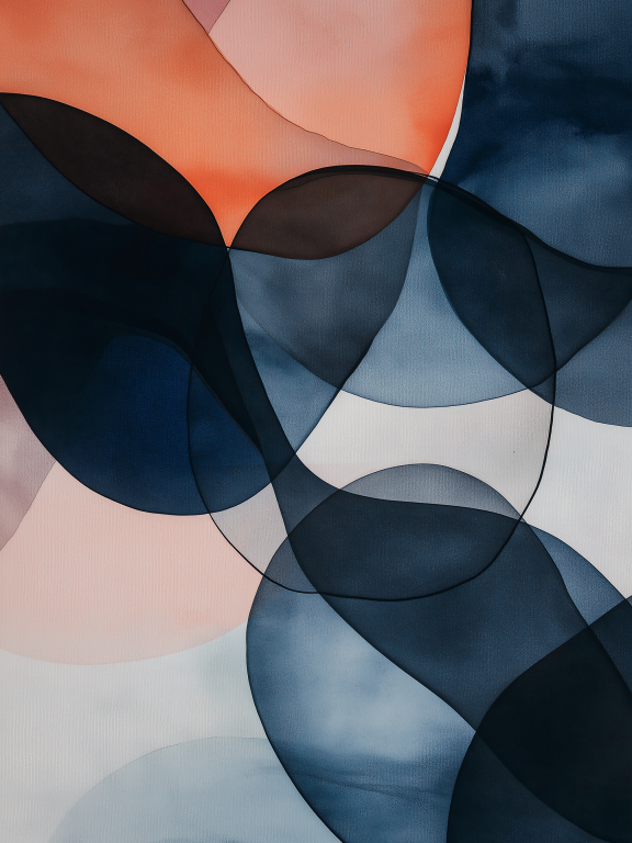Interconnected Hues presenteert een harmonieuze dans van overlappende cirkels in zachte tinten van koraal, blauw en grijs die elegant in elkaar overvloeien. De transparante lagen creƫren nieuwe kleuren waar ze elkaar ontmoeten, een visuele metafoor voor verbondenheid en eenheid. Dit serene abstracte kunstwerk straalt rust en evenwicht uit met zijn organische vormen en subtiele kleurverloop. Perfect voor moderne interieurs die verlangen naar zachte elegantie en contemplatieve schoonheid.