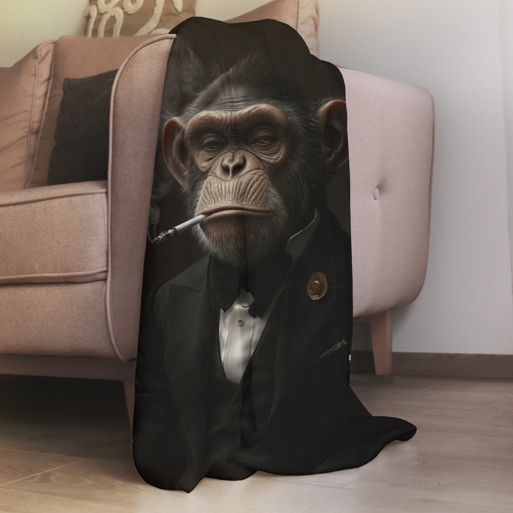 Mobster presenteert een imposante chimpansee in smoking die met sigaar en al de ultieme gangsterbaas uitbeeldt. Het dramatische zwart-wit portret met zijn film noir sfeer straalt autoriteit en gevaarlijke charme uit. Deze humoristische antropomorfe kunst speelt met onze perceptie van macht en menselijkheid op een manier die zowel grappig als intrigerend is. Perfect voor liefhebbers van eigenzinnige kunst die houden van een knipoog naar klassieke maffia-esthetiek.
