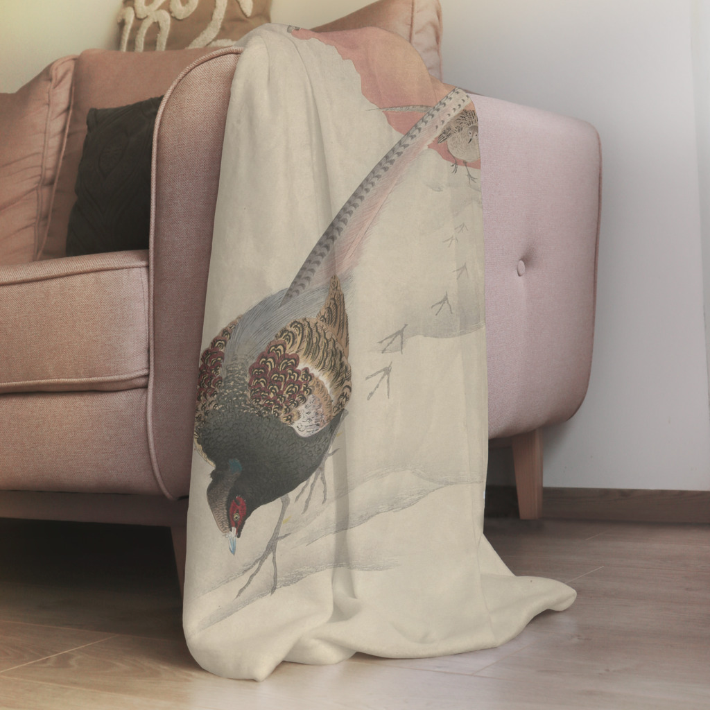 Fazantenkoppel in de Sneeuw presenteert een klassieke Japanse kunstwerk waarin twee elegante fazanten hun winterdans uitvoeren in een verstilde sneeuwlandschap. De delicate penseelstreken en de verfijnde kleuren tonen de traditionele Japanse esthetiek in al zijn pracht, waarbij elke veer en elke beweging met een minutieuze precisie is vastgelegd. De zachte sneeuw contrasteert prachtig met de rijke patronen van de fazantenveren en creƫert een gevoel van vredige contemplatie. Dit tijdloze meesterwerk brengt de sereniteit en elegantie van de Japanse kunst in je interieur.