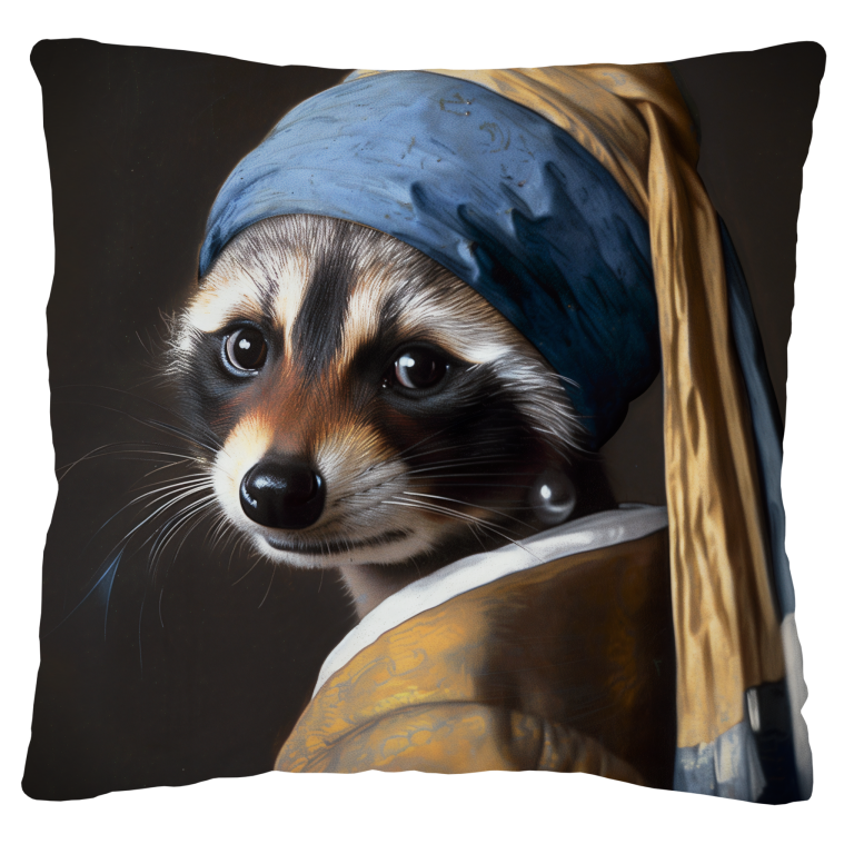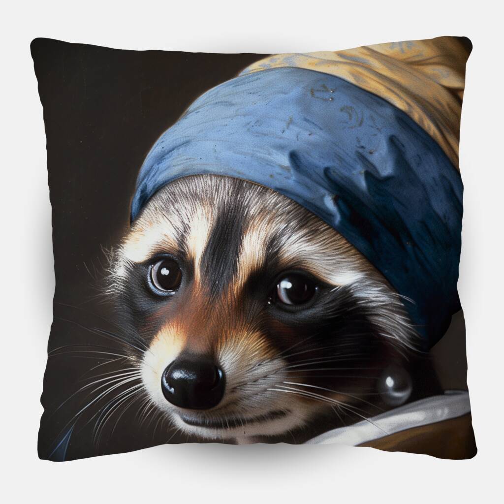 Pearly Raccoon presenteert een charmante hommage aan Vermeers beroemde Meisje met de Parel, waarbij een schattige wasbeer de plaats inneemt van het iconische model. De klassieke compositie wordt behouden met de karakteristieke blauwe hoofddoek en de mysterieuze parel, terwijl de ondeugende uitdrukking van de wasbeer een humoristische twist toevoegt aan dit tijdloze meesterwerk. De rijke kleuren en de meesterlijke lichtval tonen respect voor de originele schildertechniek. Dit speelse kunstwerk combineert klassieke kunstgeschiedenis met moderne humor en brengt een glimlach in elke ruimte.