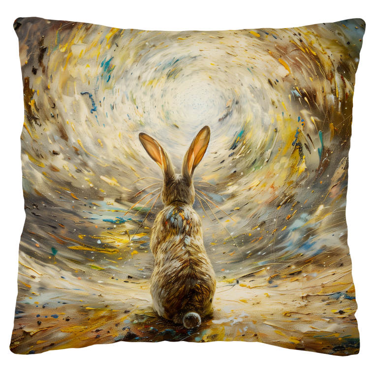 Be Brave toont een prachtig moment van moed en vastberadenheid waarin een konijn centraal staat in een magische wervelwind van gouden licht. Het kleine dier bevindt zich in het oog van de storm, omgeven door dramatische bewegingen van wind en energie die een cirkel van kracht om hem heen vormen. De warme goudtinten contrasteren met de donkere, mystieke achtergrond en creëren een krachtige symboliek van innerlijke sterkte. Dit inspirerende kunstwerk moedigt aan om met moed het onbekende tegemoet te treden.
