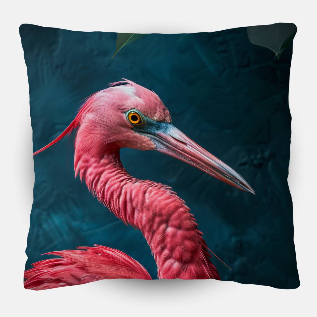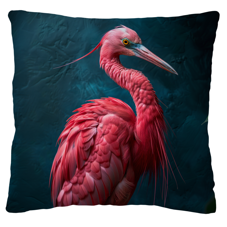 Pink Heron toont een majestueuze roze reiger in zijn volle glorie, omgeven door tropische bladeren in diepe groentinten. De intense koraalroze verentooi contrasteert prachtig met de mysterieuze donkere omgeving, waardoor elke verendetail en de elegante houding van deze prachtige vogel worden benadrukt. De hyperrealistische stijl en rijke kleuren maken dit tot een opvallend kunstwerk dat zowel natuurliefhebbers als liefhebbers van gedurfde interieurdecoratie zal bekoren.