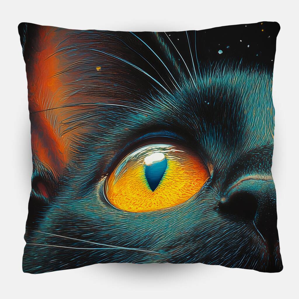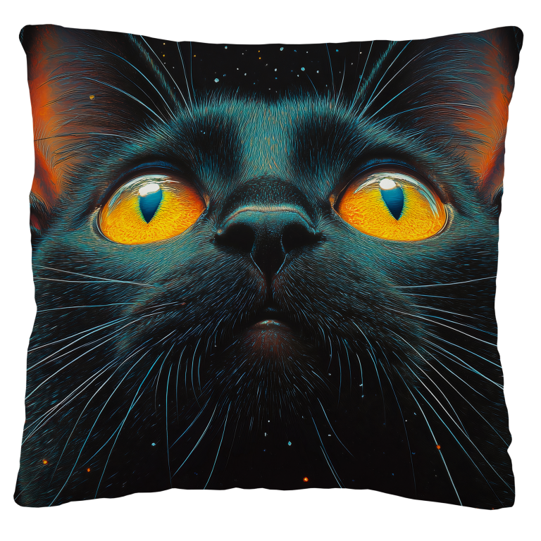 Space Cat toont een mysterieuze zwarte kat met hypnotiserende gouden ogen die rechtstreeks uit de diepten van het universum lijkt te kijken. De kosmische achtergrond vol sterren en planeten versterkt de buitenaardse aura van dit feline wezen, terwijl zijn doordringende blik een gevoel van intelligentie en mystiek uitstraalt. De rijke contrasten tussen het diepe zwart van de vacht en de warme gouden accenten creëren een dramatische en betoverende compositie. Dit fascinerende kunstwerk combineert de mystiek van katten met de oneindige wonderen van de ruimte.