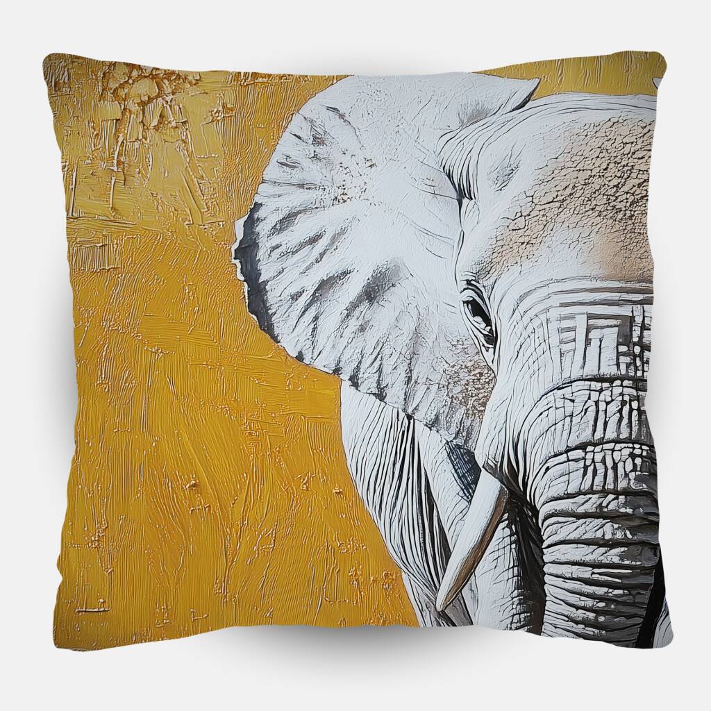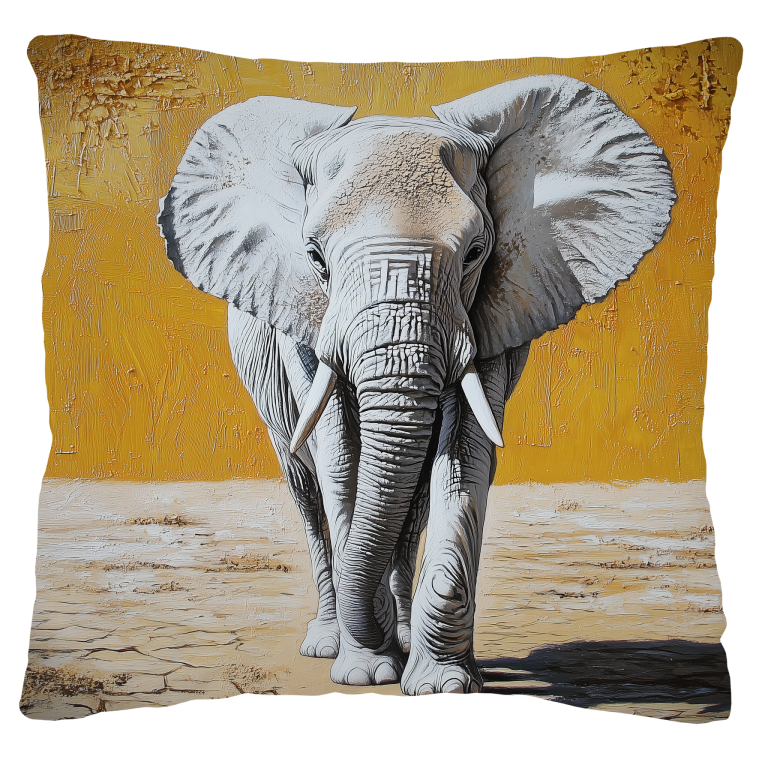 Elephant Desert toont een majestueuze olifant die standvastig doorheen een uitgedroogd landschap wandelt, waarbij de gebarsten aarde onder zijn poten de kracht van de natuur symboliseert. De imposante verschijning van het dier contrasteert prachtig met de warme, gouden achtergrond die de atmosfeer van de Afrikaanse savanne oproept. Elke rimpel en detail van de olifantshuid is zorgvuldig weergegeven, wat de waardigheid en wijsheid van dit iconische dier benadrukt. Dit krachtige kunstwerk brengt de grandeur van de wilde natuur direct in je leefruimte.