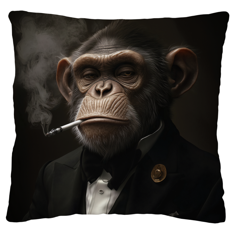 Mobster presenteert een imposante chimpansee in smoking die met sigaar en al de ultieme gangsterbaas uitbeeldt. Het dramatische zwart-wit portret met zijn film noir sfeer straalt autoriteit en gevaarlijke charme uit. Deze humoristische antropomorfe kunst speelt met onze perceptie van macht en menselijkheid op een manier die zowel grappig als intrigerend is. Perfect voor liefhebbers van eigenzinnige kunst die houden van een knipoog naar klassieke maffia-esthetiek.