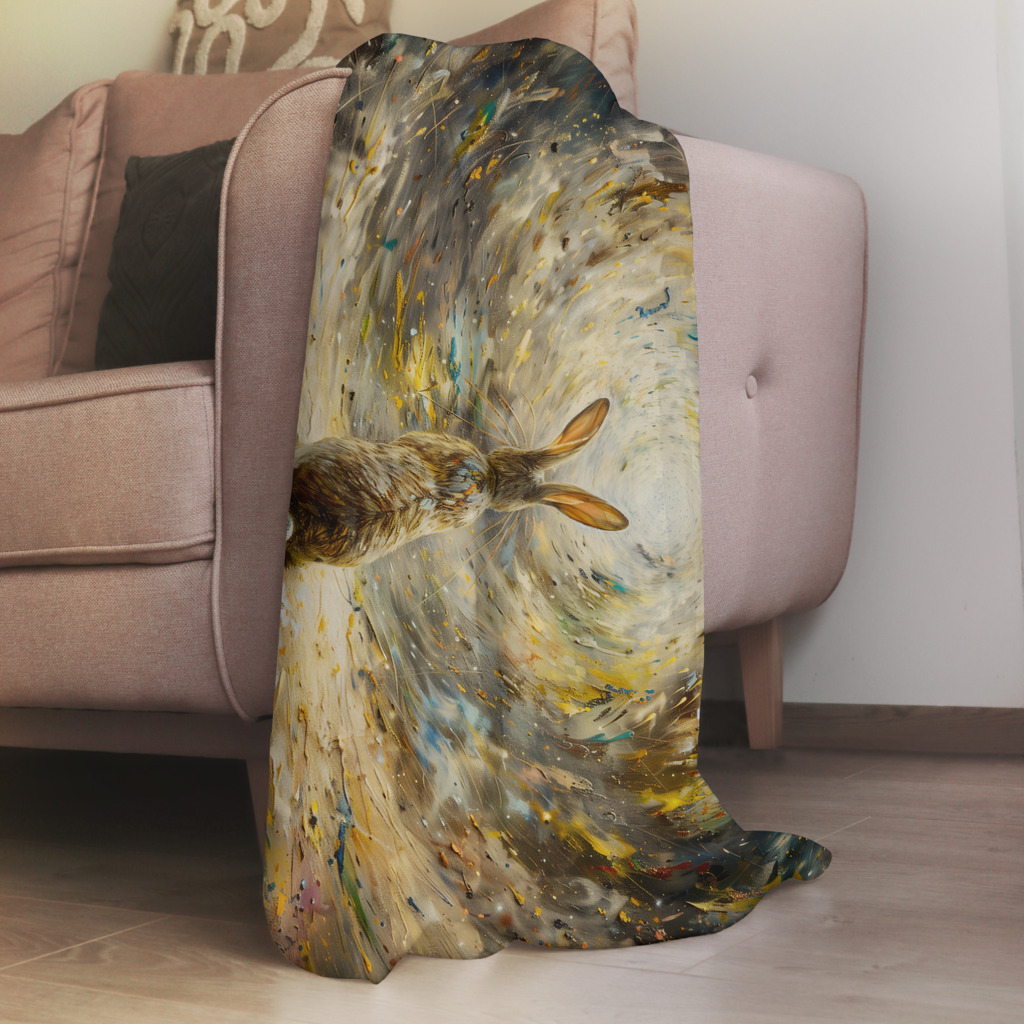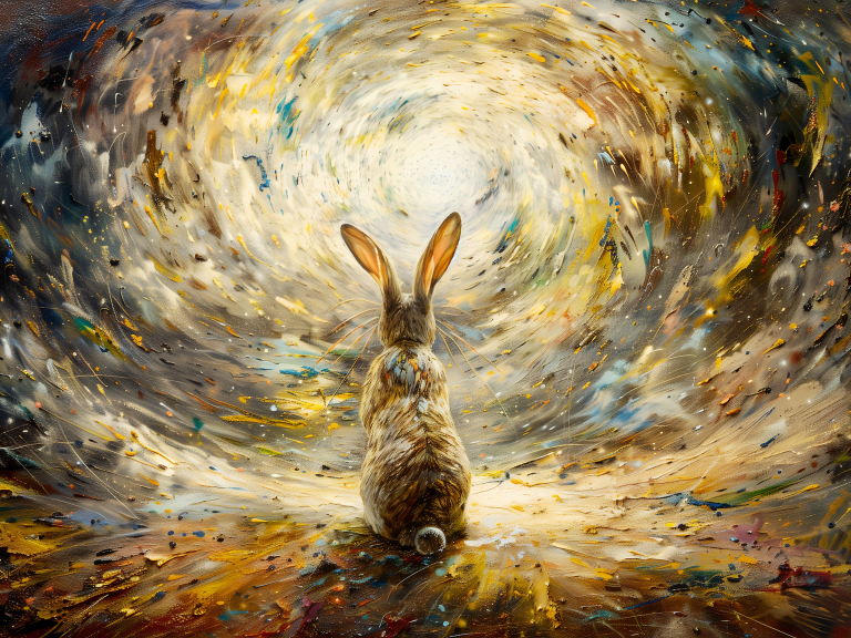Be Brave toont een prachtig moment van moed en vastberadenheid waarin een konijn centraal staat in een magische wervelwind van gouden licht. Het kleine dier bevindt zich in het oog van de storm, omgeven door dramatische bewegingen van wind en energie die een cirkel van kracht om hem heen vormen. De warme goudtinten contrasteren met de donkere, mystieke achtergrond en creƫren een krachtige symboliek van innerlijke sterkte. Dit inspirerende kunstwerk moedigt aan om met moed het onbekende tegemoet te treden.