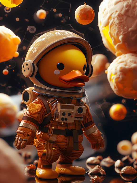 Space Duck presenteert een onweerstaanbaar schattige astronauteneend die een kosmische expeditie onderneemt tussen gouden planeten en sterrennevels. De warme oranje en gele tinten gecombineerd met het realistische ruimtepak creƫren een perfecte balans tussen humor en avontuur. Dit charmante kunstwerk brengt de wonderen van de ruimtevaart naar huis met een vrolijke twist die zowel kinderen als volwassenen doet glimlachen. Perfect voor wie houdt van schattige karakters en interstellaire avonturen.