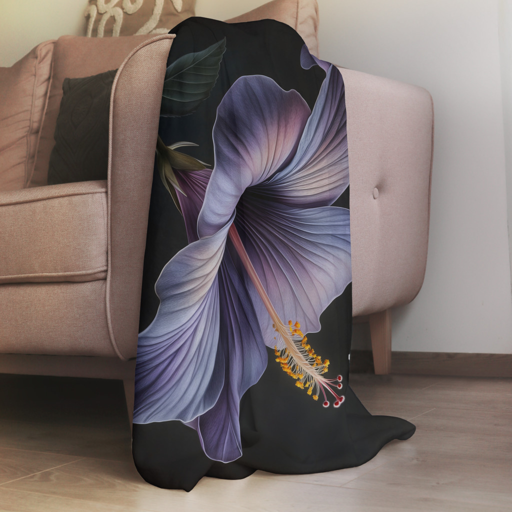 Purple Hibiscus toont de koninklijke schoonheid van een paarse hibiscusbloem in volle bloei tegen een dramatisch donkere achtergrond. De zijdezachte bloemblaadjes met hun subtiele kleurverloop van lavendel naar diep paars stralen elegantie en verfijning uit. De gouden meeldraden vormen een warm contrast met de koele bloemtinten. Dit botanische meesterwerk vangt de delicate kracht van tropische flora in een tijdloze compositie. Perfect voor liefhebbers van verfijnde bloemenfotografie en natuurlijke elegantie.