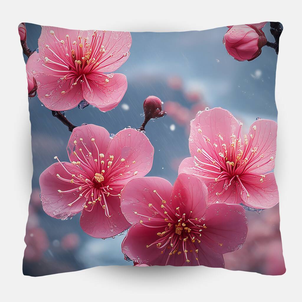Mountain Flower toont de delicate schoonheid van kersenbloesems tegen een mystiek berglandschap. Roze bloemen ontvouwen zich in volle pracht op donkere takken, terwijl zachte sneeuwvlokken neerdwarrelen in een serene dans. De wazige bergen op de achtergrond creëren een gevoel van diepte en afzondering, alsof deze bloesems bloeien in een verborgen vallei ver van de bewoonde wereld. Het contrast tussen de kwetsbare bloemblaadjes en het ruige berglandschap symboliseert de kracht van schoonheid in adversiteit. De zachte kleurgradiënten van roze naar blauwgrijs roepen een sfeer op van vredige contemplatie. Dit werk viert de vluchtige maar overweldigende schoonheid van de lente in bergachtige streken, waar elk bloemetje een klein wonder is.