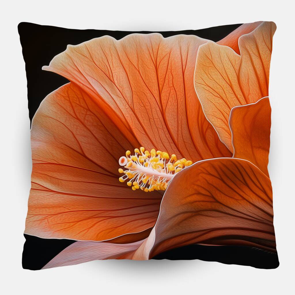 Orange Hibiscus toont de sublieme schoonheid van een bloeiende hibiscusbloem in warme oranje tinten tegen een dramatisch donkere achtergrond. De delicate bloemblaadjes met hun natuurlijke nervatuur en de gouden meeldraden creëren een indrukwekkend spel van licht en schaduw. Deze botanische studie straalt tropische warmte en elegantie uit, waarbij elk detail van de bloem zorgvuldig is vastgelegd. Een verfijnde keuze voor liefhebbers van natuurfotografie en botanische kunst.