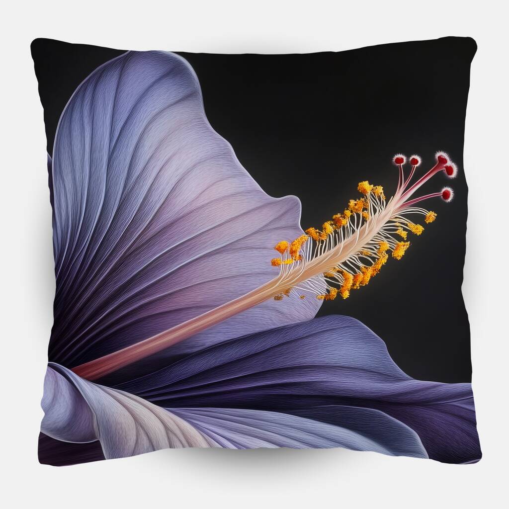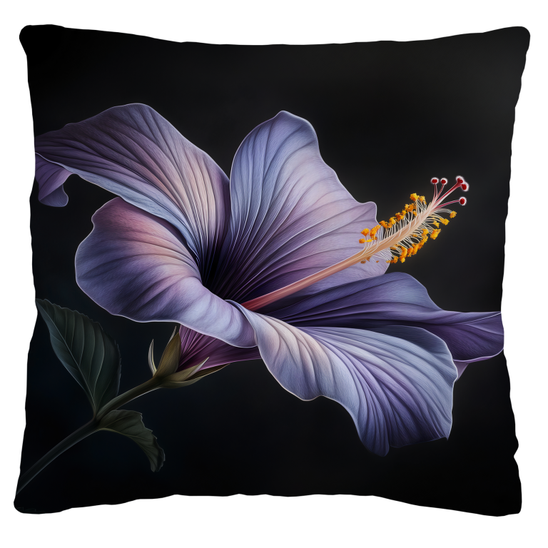 Purple Hibiscus toont de koninklijke schoonheid van een paarse hibiscusbloem in volle bloei tegen een dramatisch donkere achtergrond. De zijdezachte bloemblaadjes met hun subtiele kleurverloop van lavendel naar diep paars stralen elegantie en verfijning uit. De gouden meeldraden vormen een warm contrast met de koele bloemtinten. Dit botanische meesterwerk vangt de delicate kracht van tropische flora in een tijdloze compositie. Perfect voor liefhebbers van verfijnde bloemenfotografie en natuurlijke elegantie.