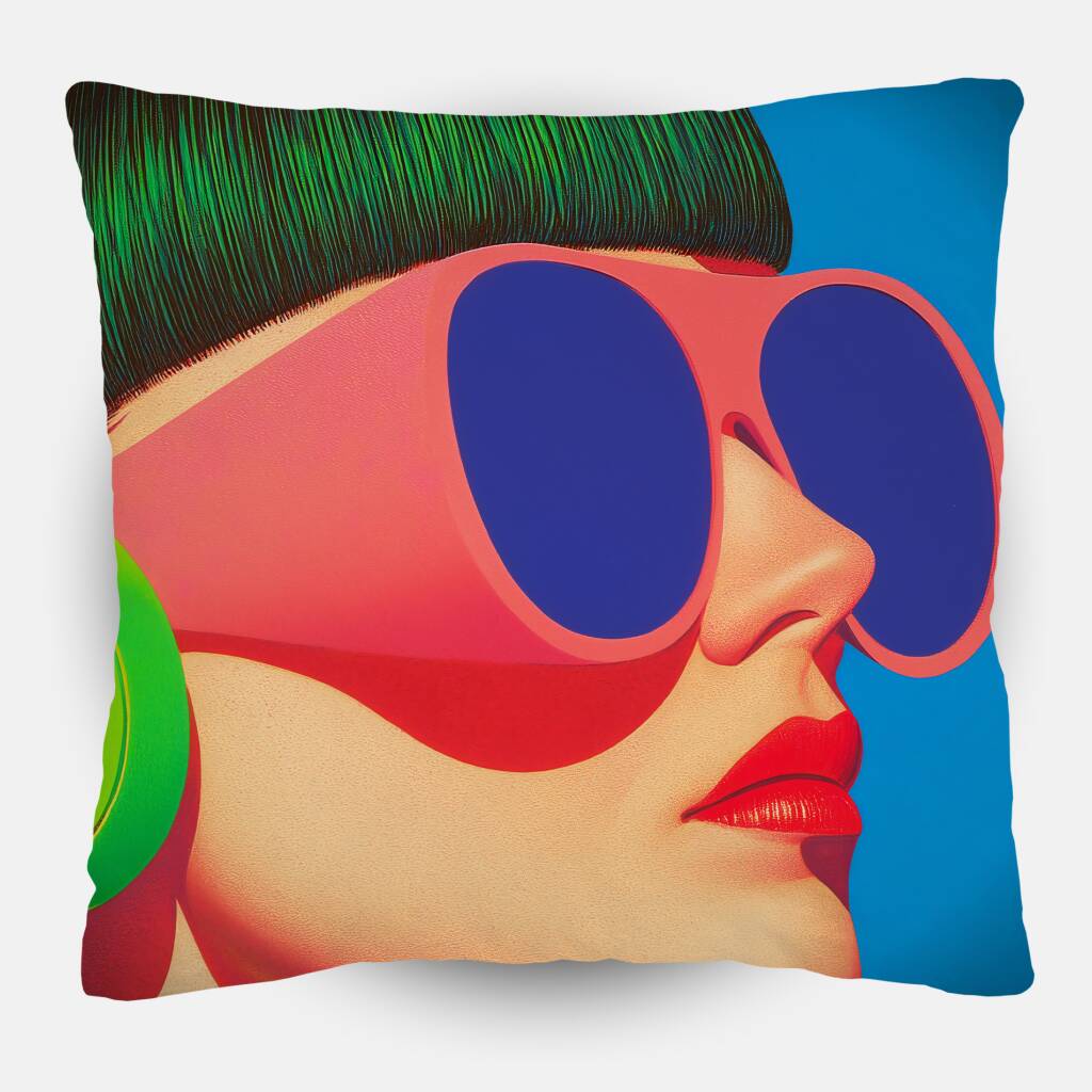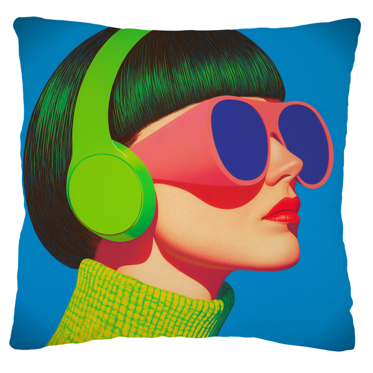 Outdoor Introvert toont een stijlvol portret van een moderne vrouw die volledig opgaat in haar eigen wereld, uitgerust met koptelefoon en zonnebril tegen een levendige blauwe achtergrond. De opvallende neon groene en gele accenten van haar kleding en accessoires contrasteren krachtig met de rustige blauwe tinten, wat een gevoel van moderne urban coolness creëert. De pop art-stijl en de grafische compositie geven het kunstwerk een eigentijdse, trendy uitstraling. Dit contemporary portret belichaamt de moderne digitale levensstijl en brengt een vleugje streetwear esthetiek in je interieur.
