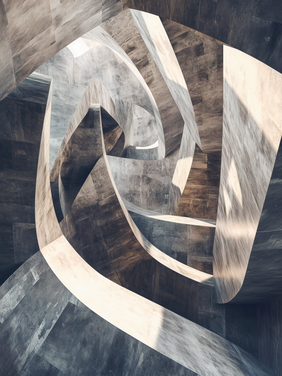 Which Way is Up toont een fascinerende architecturale illusie waar ruimte en vorm elkaar op verrassende wijze ontmoeten. Dit indrukwekkende kunstwerk speelt met onze perceptie door geometrische vormen te laten zweven in een wereld waar boven en onder vervagen. De warme betonnen texturen geven het geheel een industriƫle elegantie die perfect past in een modern interieur. Een gedurfde keuze voor liefhebbers van abstracte architectuur en ruimtelijke experimenten.