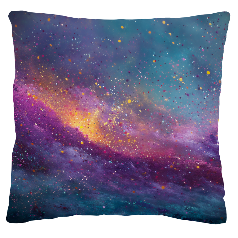 Stellar Storm presenteert een kosmische dans van paarse en blauwe nevels doorspekt met gouden sterrenstof. Golven van energie kolken door de ruimte in een spectaculaire vertoning van galactische kracht. Dit celestiale kunstwerk vangt de ontembare schoonheid van het universum, waar geboorte en vernietiging hand in hand gaan. Een betoverend meesterwerk voor sterrenkijkers en dromers die gefascineerd zijn door de mysteries van de kosmos.