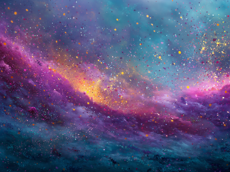 Stellar Storm presenteert een kosmische dans van paarse en blauwe nevels doorspekt met gouden sterrenstof. Golven van energie kolken door de ruimte in een spectaculaire vertoning van galactische kracht. Dit celestiale kunstwerk vangt de ontembare schoonheid van het universum, waar geboorte en vernietiging hand in hand gaan. Een betoverend meesterwerk voor sterrenkijkers en dromers die gefascineerd zijn door de mysteries van de kosmos.
