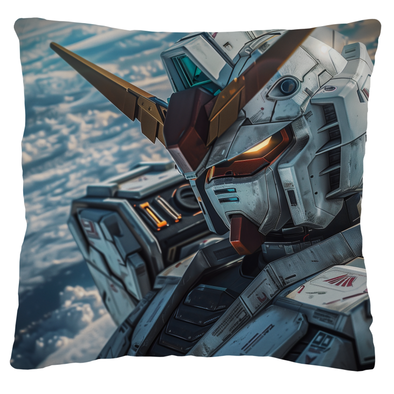 Mobile Suit Gundam Wing toont een imposante mecha die zweeft in de ruimte met de aarde als adembenemend decor op de achtergrond. De gedetailleerde metalen bepantsering, versierd met subtiele rode en goudkleurige accenten, straalt kracht en technologische superioriteit uit. De iconische V-vormige helmantenne en de gloeiende oranje ogen geven de machine een indringende uitstraling. Het spel van licht en schaduw over het robuuste ontwerp benadrukt de realistische texturen en het futuristische karakter van deze krachtige strijdmachine, waardoor het kunstwerk een episch en visionair gevoel oproept.