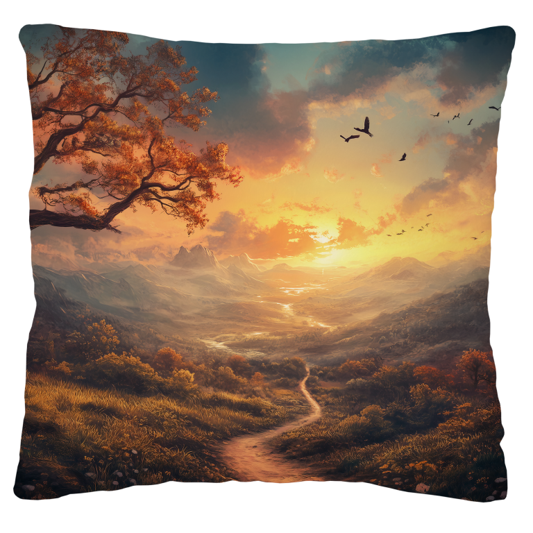 Dit schilderachtige kunstwerk neemt je mee op een magische reis door een glooiend landschap bij zonsondergang. Een kronkelend pad leidt je door een idyllische vallei, omringd door kleurrijke bomen en een warme gloed van de ondergaande zon. De sfeer ademt rust, avontuur en een vleugje mysterie, perfect voor liefhebbers van natuurlijke schoonheid. Ideaal om een gevoel van ruimte en sereniteit toe te voegen aan je interieur, of het nu een woonkamer, kantoor of slaapkamer betreft. Een betoverend statement voor elke wand.