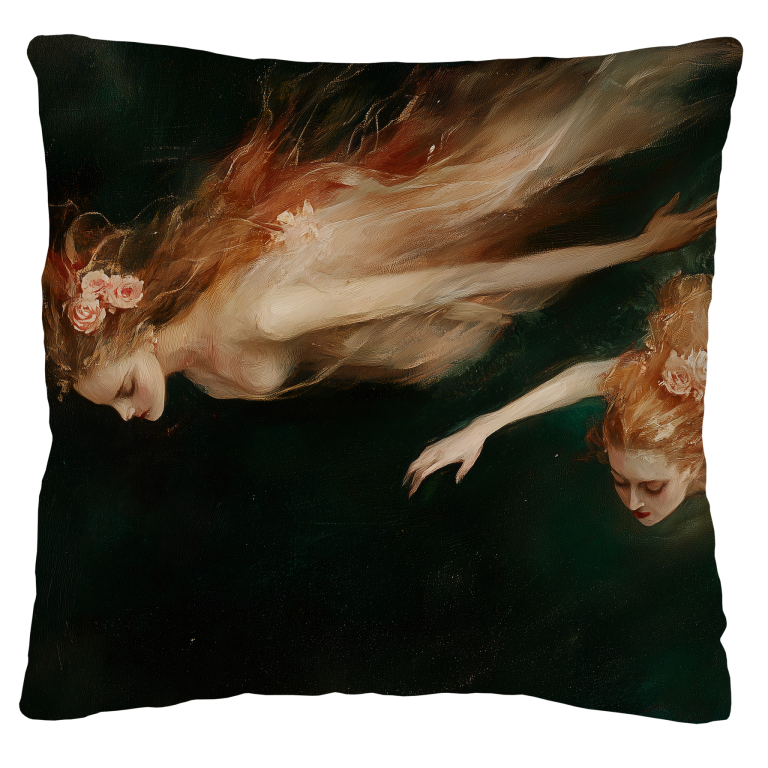 Sirens toont twee etherische zeenimfen die zweven in donkere wateren, hun lichamen gehuld in vloeiende gewaden die dansen als zeewier in de stroming. De klassieke schilderstijl en de mysterieuze sfeer roepen de oude mythologieën tot leven, waar schoonheid en gevaar hand in hand gaan. Dit betoverende kunstwerk vangt de verleidelijke maar gevaarlijke natuur van deze mythische wezens. Perfect voor liefhebbers van klassieke kunst en mythologische verhalen.