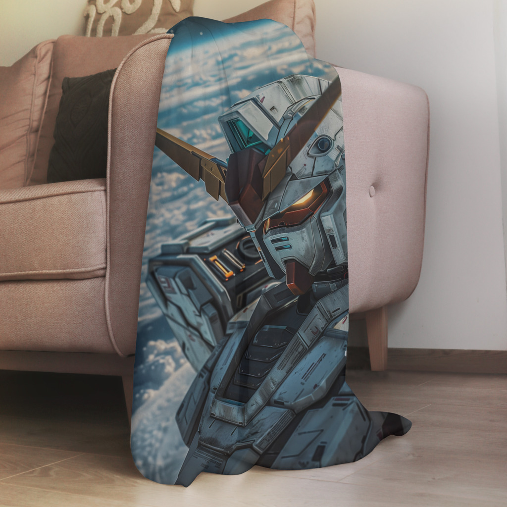 Mobile Suit Gundam Wing toont een imposante mecha die zweeft in de ruimte met de aarde als adembenemend decor op de achtergrond. De gedetailleerde metalen bepantsering, versierd met subtiele rode en goudkleurige accenten, straalt kracht en technologische superioriteit uit. De iconische V-vormige helmantenne en de gloeiende oranje ogen geven de machine een indringende uitstraling. Het spel van licht en schaduw over het robuuste ontwerp benadrukt de realistische texturen en het futuristische karakter van deze krachtige strijdmachine, waardoor het kunstwerk een episch en visionair gevoel oproept.