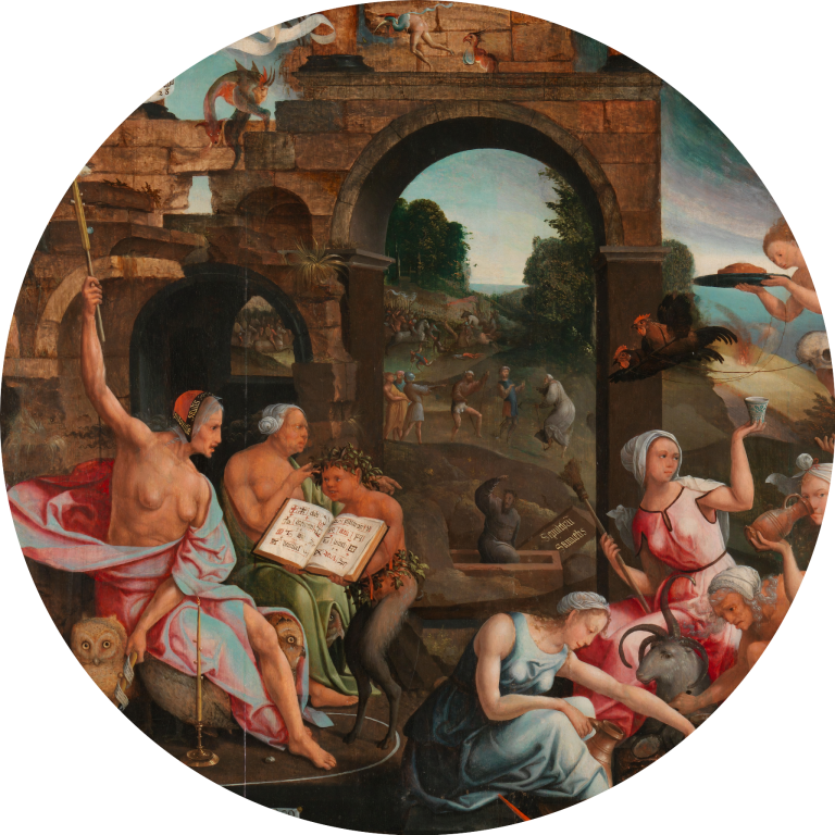 Saul bij de Heks van Endor presenteert een complex bijbels tafereel vol mystiek en drama. Het werk toont koning Saul die in wanhoop de heks van Endor raadpleegt om de geest van de profeet Samuel op te roepen. De compositie is rijk aan symboliek en verhalende details - van de magische rituelen rondom de heks tot de verschrikkingen die zich in de achtergrond afspelen. De warme aardetinten contrasteren met de koele blauwe lucht, waarin bovennatuurlijke verschijningen zweven. Dit Renaissance-meesterwerk combineert het religieuze verhaal met elementen van volksgeloof en magie, waarbij elke figuur een rol speelt in dit drama van macht, wanhoop en het bovennatuurlijke. Een fascinerende verkenning van de grenzen tussen het aardse en het spirituele rijk.