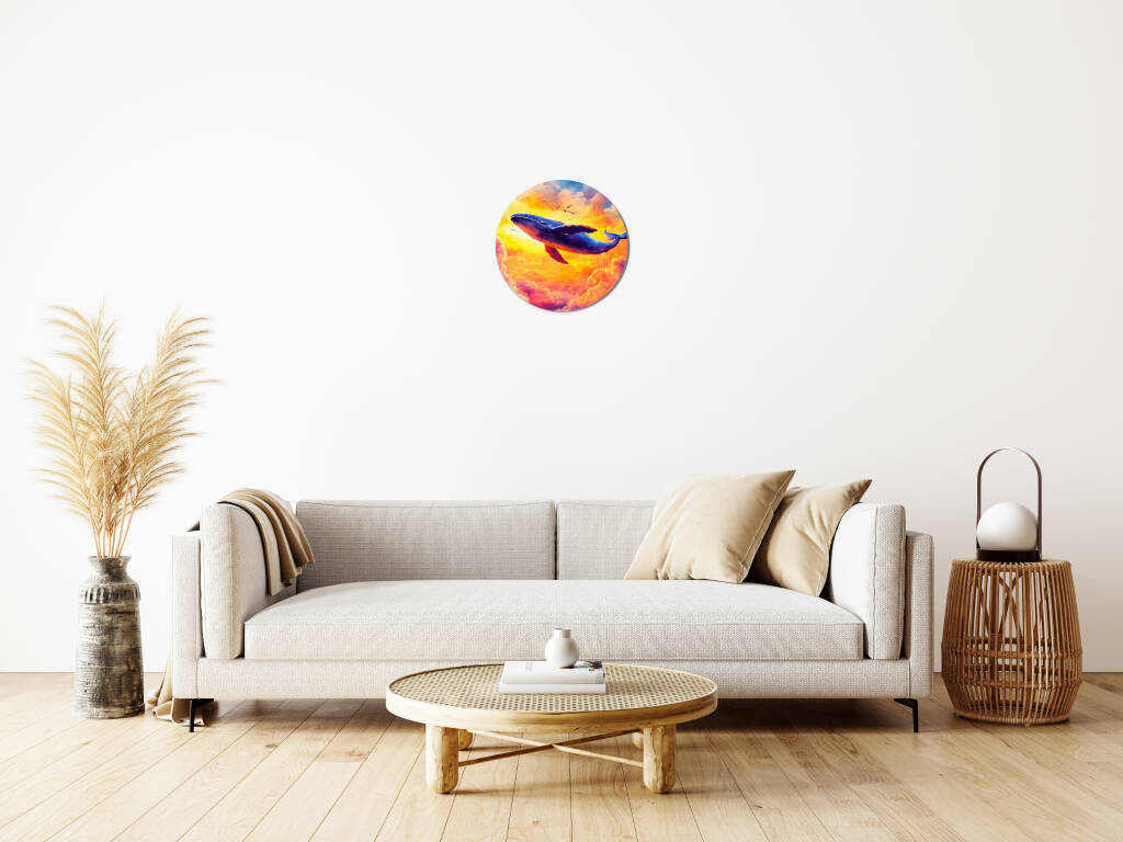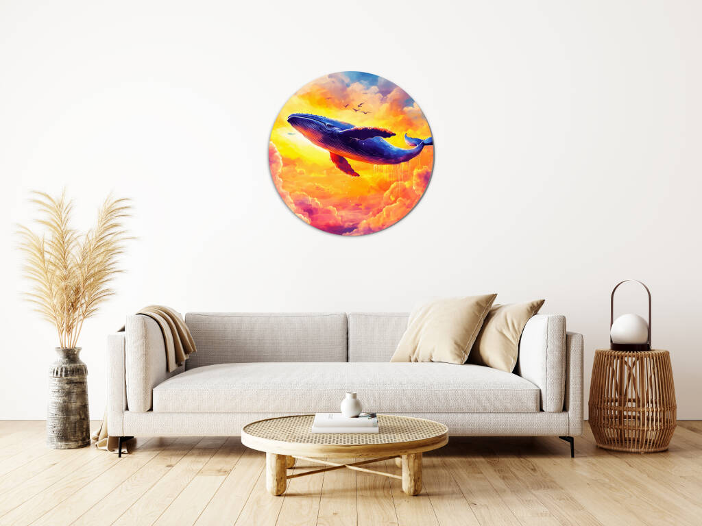 Flying Whale toont een magisch tafereel waarin een majestueuze walvis door een zee van gouden en roze wolken zweeft bij zonsondergang. De dromerige atmosfeer en warme kleuren creëren een wereld waar het onmogelijke mogelijk wordt, waar oceaanreuzen door de hemel zwemmen. Dit fantasierijke kunstwerk nodigt uit tot verwondering en herinnert ons aan de grenzeloze kracht van verbeelding. Perfect voor dromerige zielen en kinderlijke harten die geloven in wonderen.