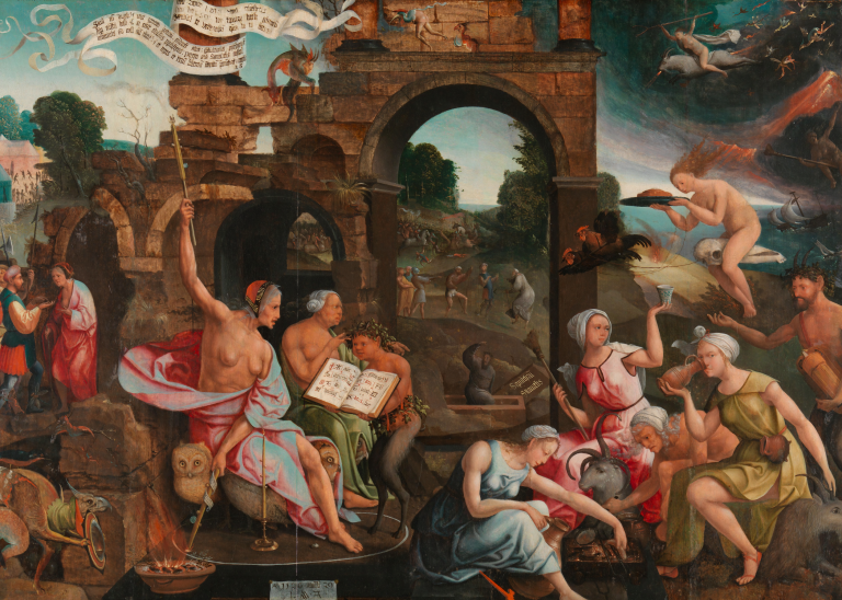Saul bij de Heks van Endor presenteert een complex bijbels tafereel vol mystiek en drama. Het werk toont koning Saul die in wanhoop de heks van Endor raadpleegt om de geest van de profeet Samuel op te roepen. De compositie is rijk aan symboliek en verhalende details - van de magische rituelen rondom de heks tot de verschrikkingen die zich in de achtergrond afspelen. De warme aardetinten contrasteren met de koele blauwe lucht, waarin bovennatuurlijke verschijningen zweven. Dit Renaissance-meesterwerk combineert het religieuze verhaal met elementen van volksgeloof en magie, waarbij elke figuur een rol speelt in dit drama van macht, wanhoop en het bovennatuurlijke. Een fascinerende verkenning van de grenzen tussen het aardse en het spirituele rijk.