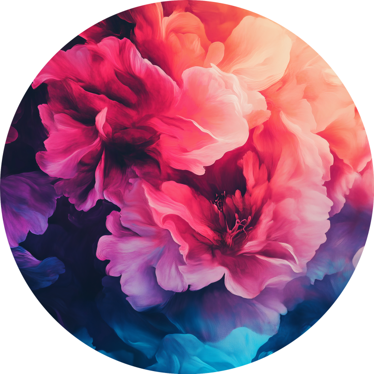 Weavy Flowers toont een betoverende cascade van bloemen die vloeiend van warm roze naar koel blauw golven in een hypnotiserende dans van kleur. De zachte, golvende bloemblaadjes creëren een dromerig effect dat doet denken aan zijden stoffen in de wind. Dit artistieke bloemenarrangement straalt beweging en levendigheid uit op een manier die zowel modern als tijdloos is. Perfect voor wie houdt van bloemenkunst met een contemporary twist en dramatische kleurgradiaties.
