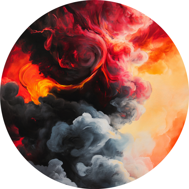 Smoke and Fire toont een explosieve dans van elementen waar vurige rood-oranje vlammen botsen met koele grijze rookwolken in een dynamisch abstract spektakel. De vloeiende vormen en intense kleuren creëren een gevoel van kracht en beweging dat zowel destructief als scheppend aanvoelt. Dit dramatische kunstwerk vangt de eeuwige strijd tussen tegengestelde krachten in een visueel meesterwerk. Perfect voor liefhebbers van abstracte kunst die houden van intense emotie en krachtige visuele statements.