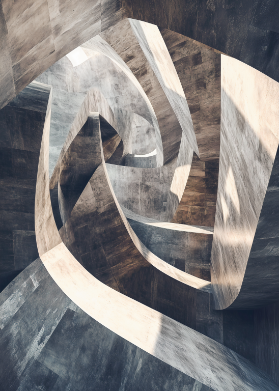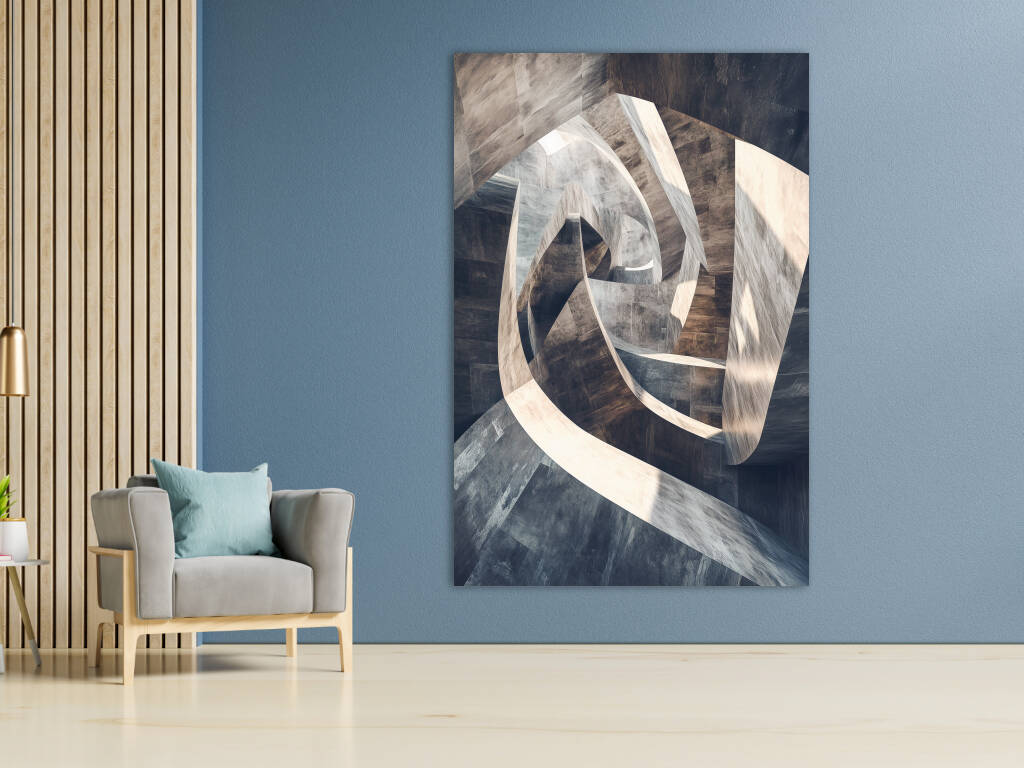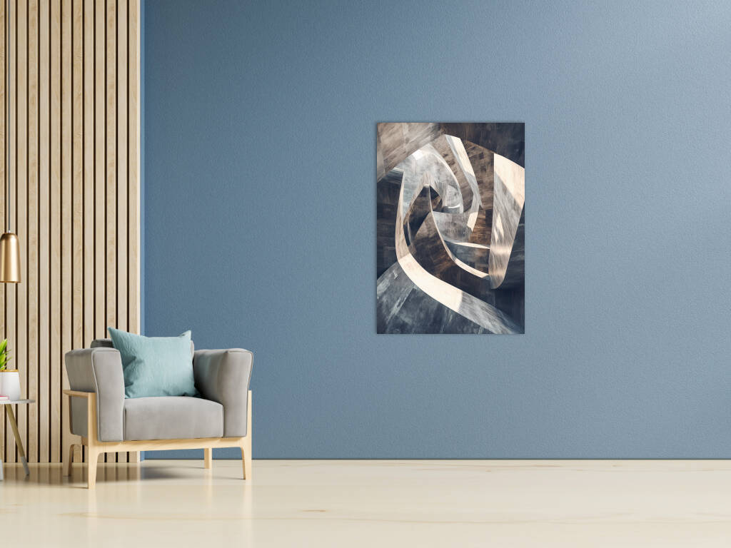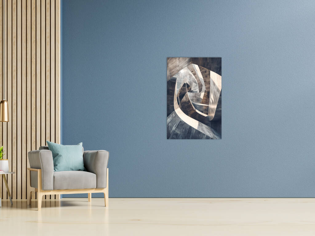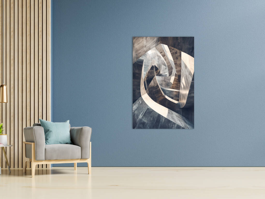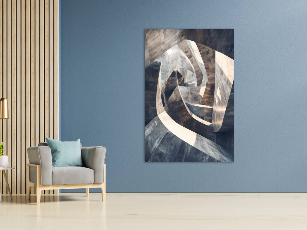 Which Way is Up toont een fascinerende architecturale illusie waar ruimte en vorm elkaar op verrassende wijze ontmoeten. Dit indrukwekkende kunstwerk speelt met onze perceptie door geometrische vormen te laten zweven in een wereld waar boven en onder vervagen. De warme betonnen texturen geven het geheel een industriƫle elegantie die perfect past in een modern interieur. Een gedurfde keuze voor liefhebbers van abstracte architectuur en ruimtelijke experimenten.