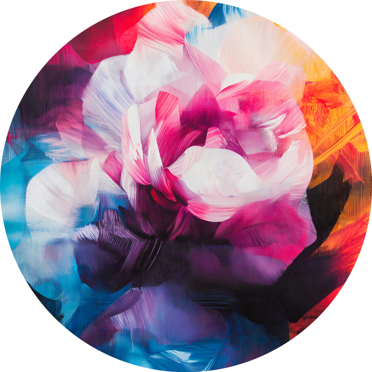 Heated Expansion toont een explosie van kleuren waarin een delicate witte bloem centraal staat te midden van levendige penseelstreken in rood, oranje, blauw en roze. De abstract expressionistische stijl creëert een gevoel van energie en beweging, waarbij de zachte bloem contrasteert met de dynamische achtergrond vol passie en emotie. De krachtige kleurcontrasten en de spontane penseelvoering geven het kunstwerk een intens gevoel van vitaliteit. Dit energieke meesterwerk brengt leven en warmte in elke ruimte door zijn uitbundige kleurenpalet.