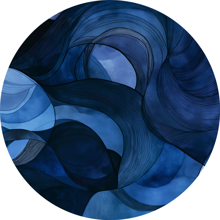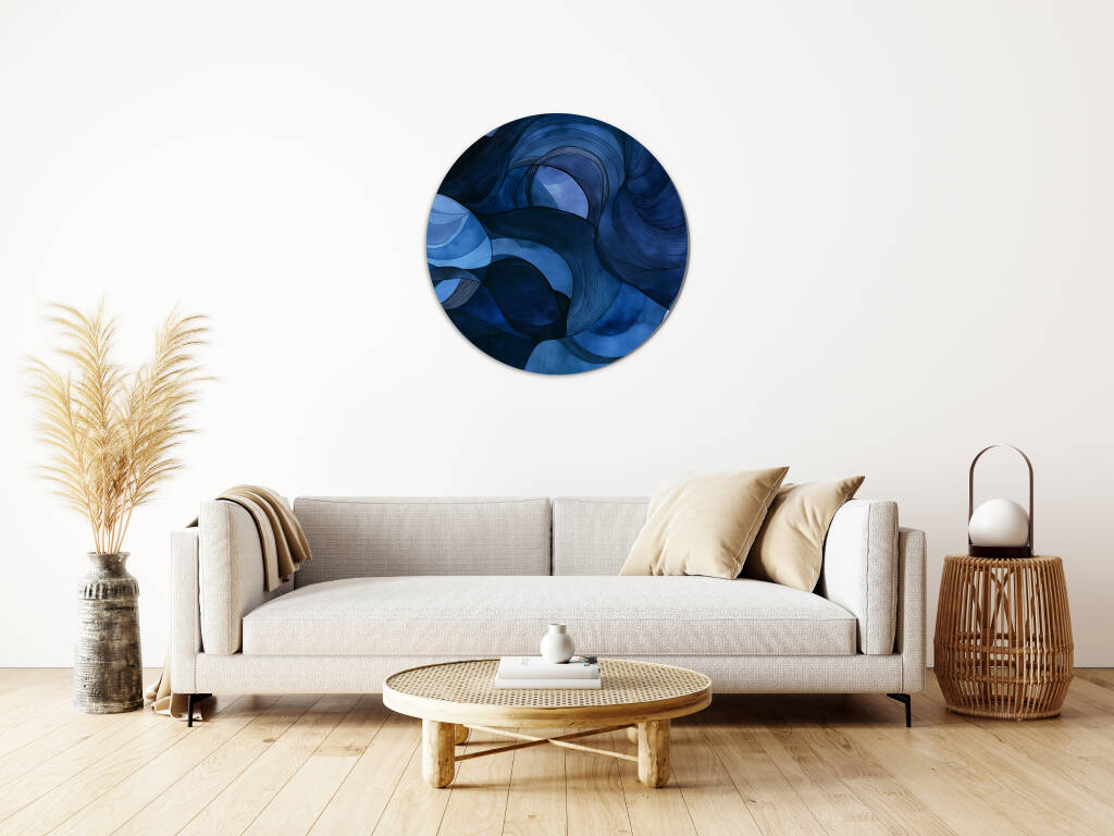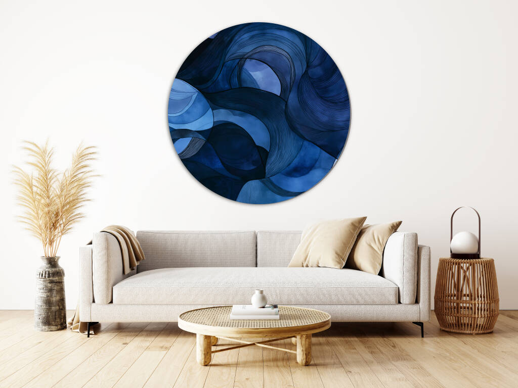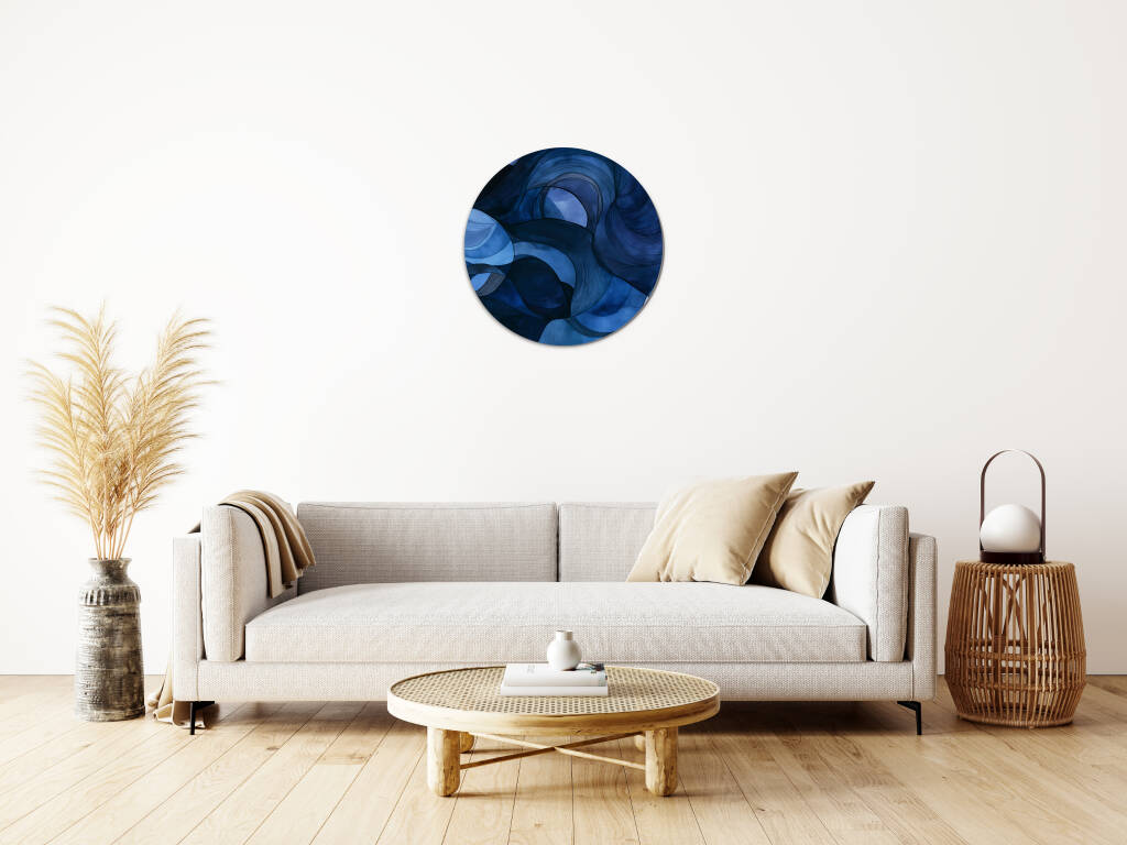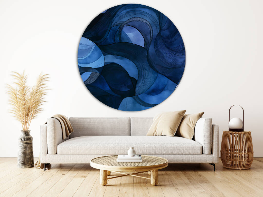 Interconnected Blues toont een hypnotiserende abstracte compositie waarin verschillende blauwtinten door elkaar heen vloeien als golven in een eindeloze dans. De vloeiende lijnen en organische vormen creëren een gevoel van beweging en diepte, waarbij elke curve naadloos overgaat in de volgende. De monochrome kleurenpalet van diep marineblauw tot licht lavendel geeft het kunstwerk een rustgevende, meditatieve kwaliteit. Dit elegante design brengt rust en harmonie in elke ruimte en symboliseert de verbondenheid van alle dingen in de natuur.