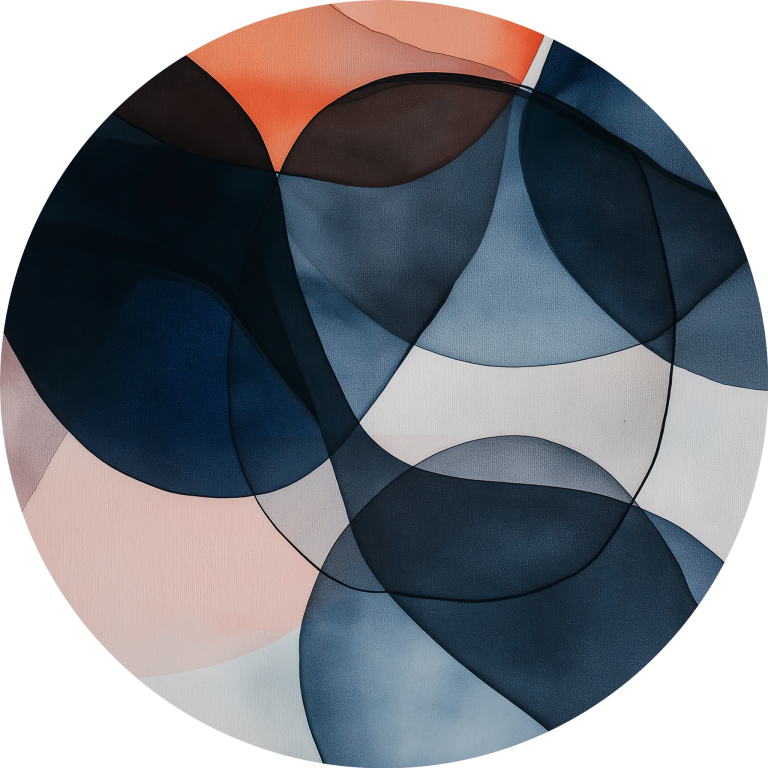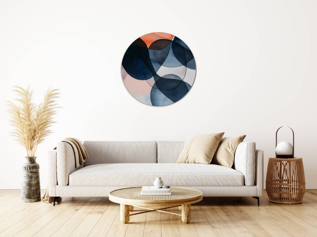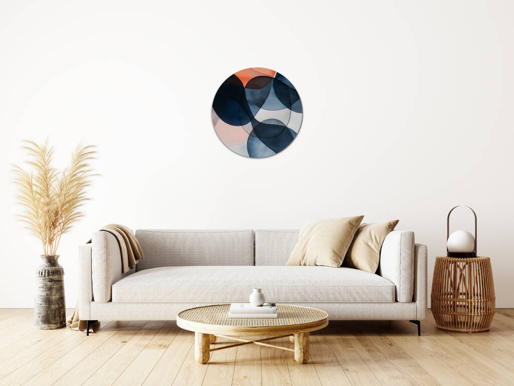 Interconnected Hues presenteert een harmonieuze dans van overlappende cirkels in zachte tinten van koraal, blauw en grijs die elegant in elkaar overvloeien. De transparante lagen creëren nieuwe kleuren waar ze elkaar ontmoeten, een visuele metafoor voor verbondenheid en eenheid. Dit serene abstracte kunstwerk straalt rust en evenwicht uit met zijn organische vormen en subtiele kleurverloop. Perfect voor moderne interieurs die verlangen naar zachte elegantie en contemplatieve schoonheid.