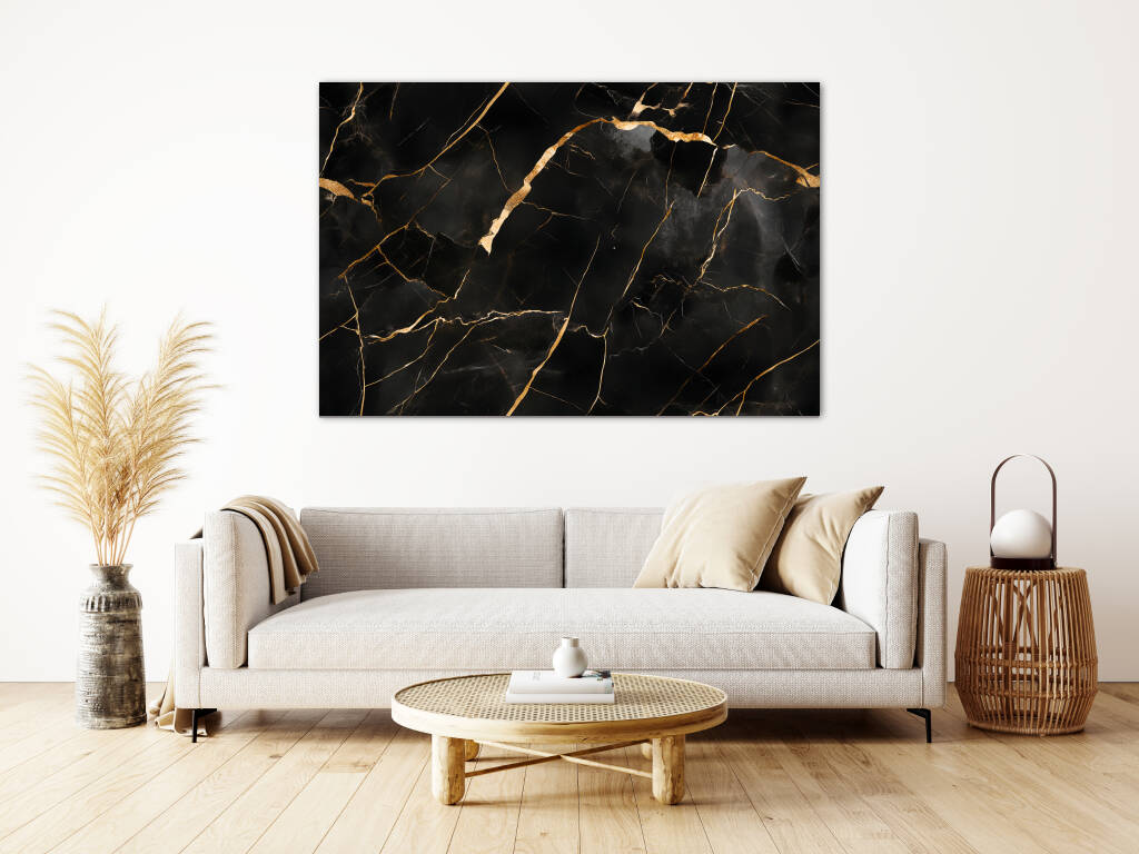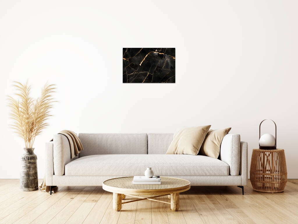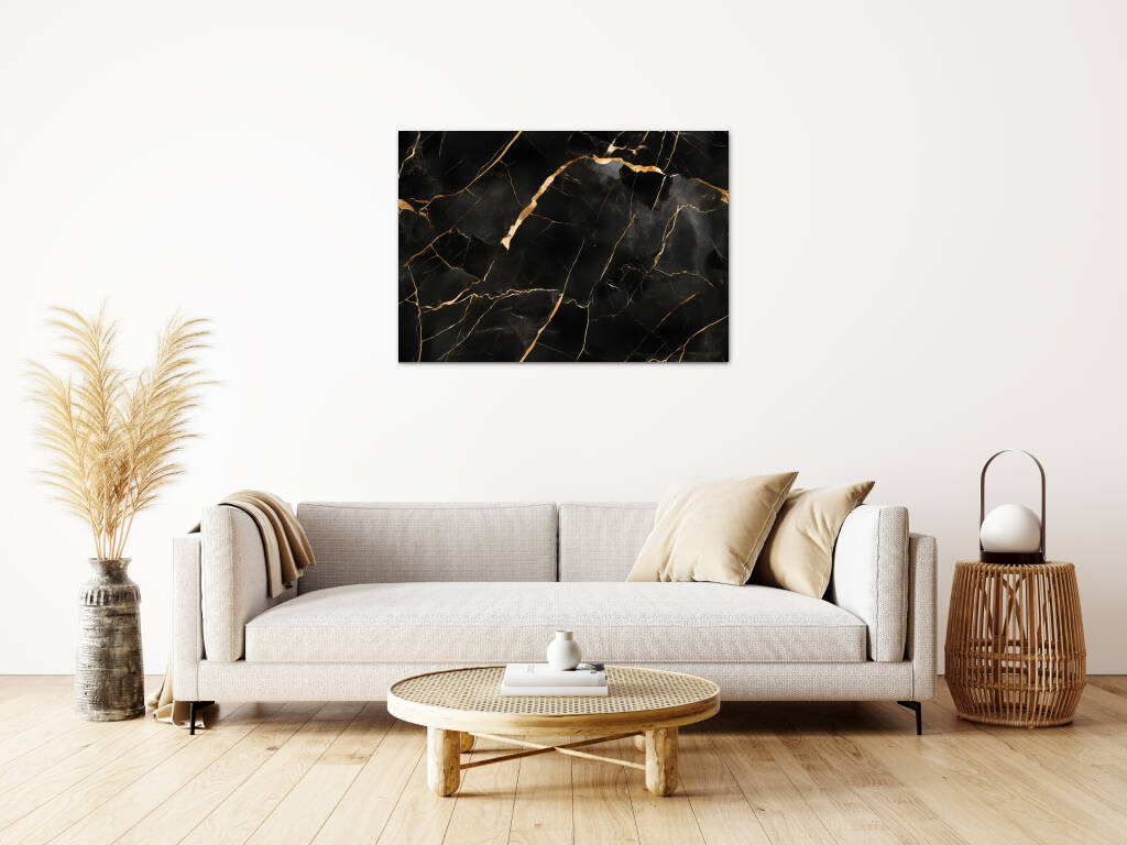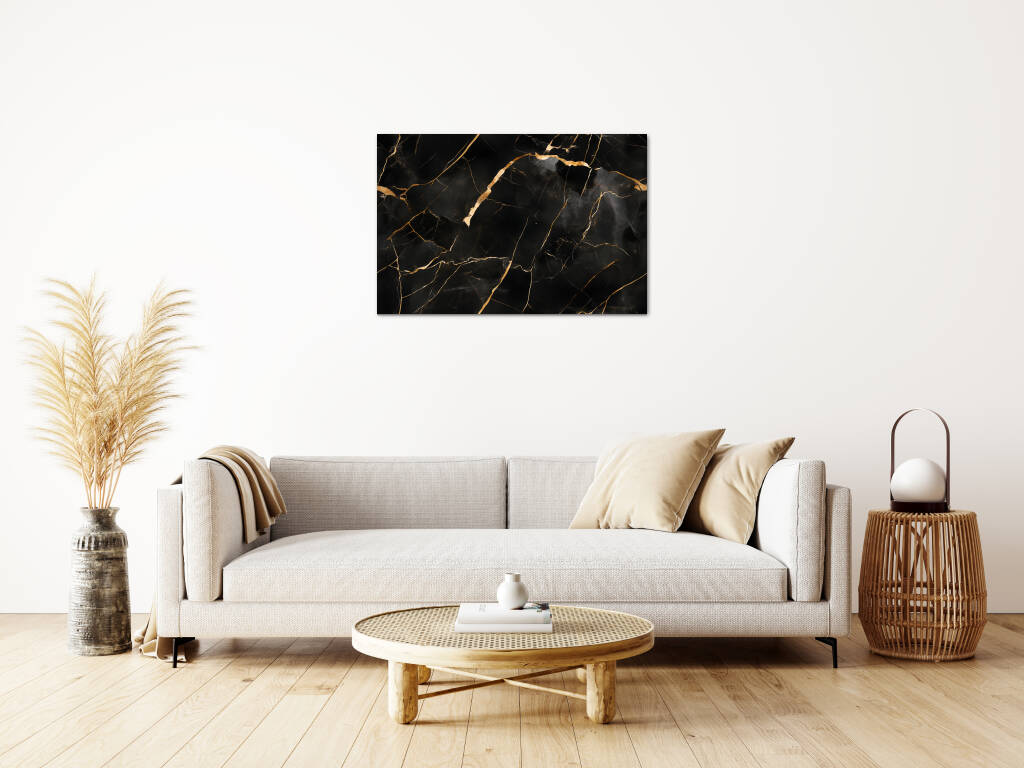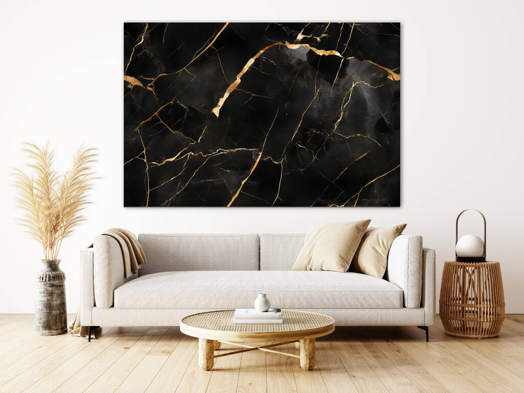 Black Gold Marble brengt de tijdloze elegantie van natuursteen in een verfijnde, luxueuze compositie. Het diepe zwarte marmer wordt dooraderd met goudkleurige lijnen die als bliksemschichten door het oppervlak dansen, waarbij elke breuk en barst een uniek patroon vormt. De glanzende textuur en de organische vormen creƫren een gevoel van exclusiviteit en sophisticatie. Dit design voegt een vleugje glamour toe aan elke moderne ruimte en straalt pure luxe uit.