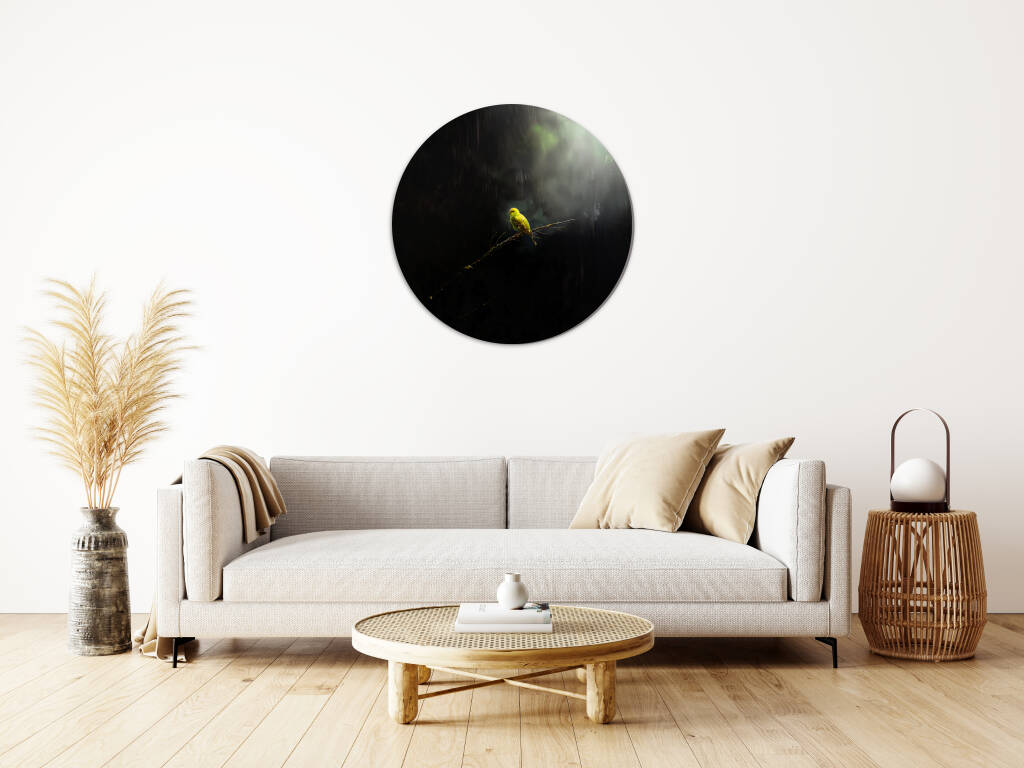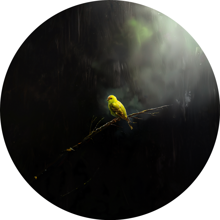 Lonely Bird toont een moment van contemplatie waarin een felgele vogel rust op een kale tak, omgeven door mysterieuze schaduwen en zacht gefilterd licht. Het dramatische contrast tussen het heldere vogeltje en de donkere, mistige omgeving creëert een atmosfeer van verstilde schoonheid en melancolie. Dit poëtische beeld spreekt tot de ziel en herinnert ons aan de kracht van eenzaamheid en reflectie. Perfect voor wie houdt van emotionele diepgang en natuurlijke symboliek in hun kunst.