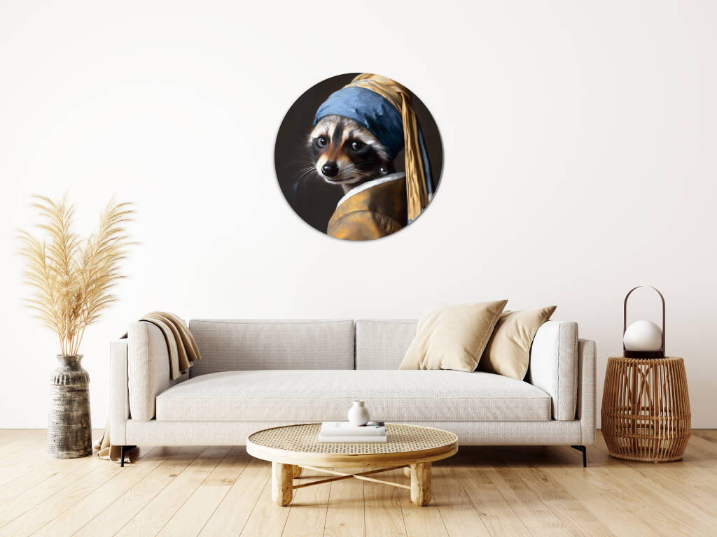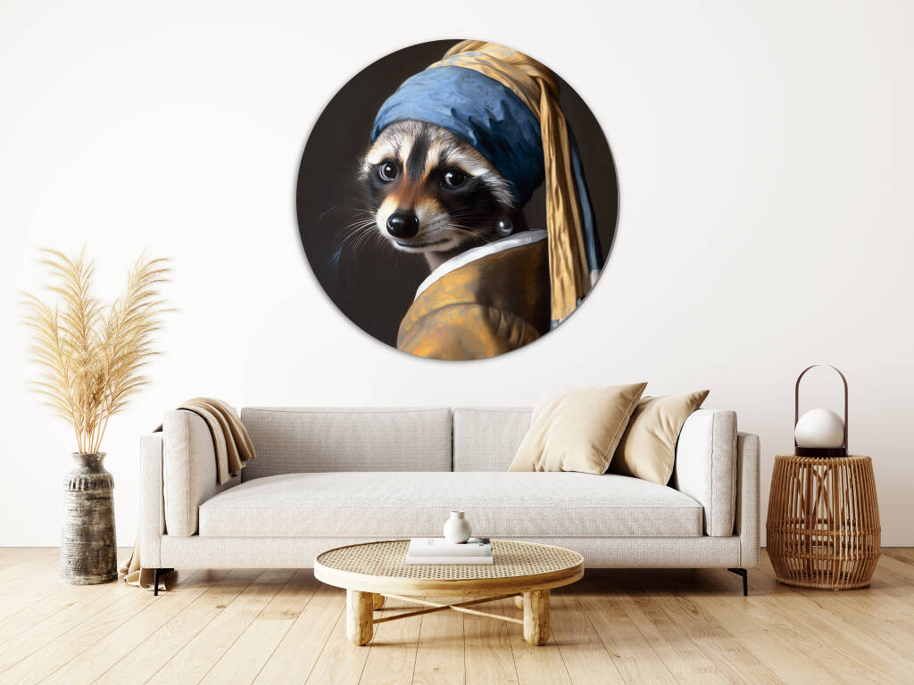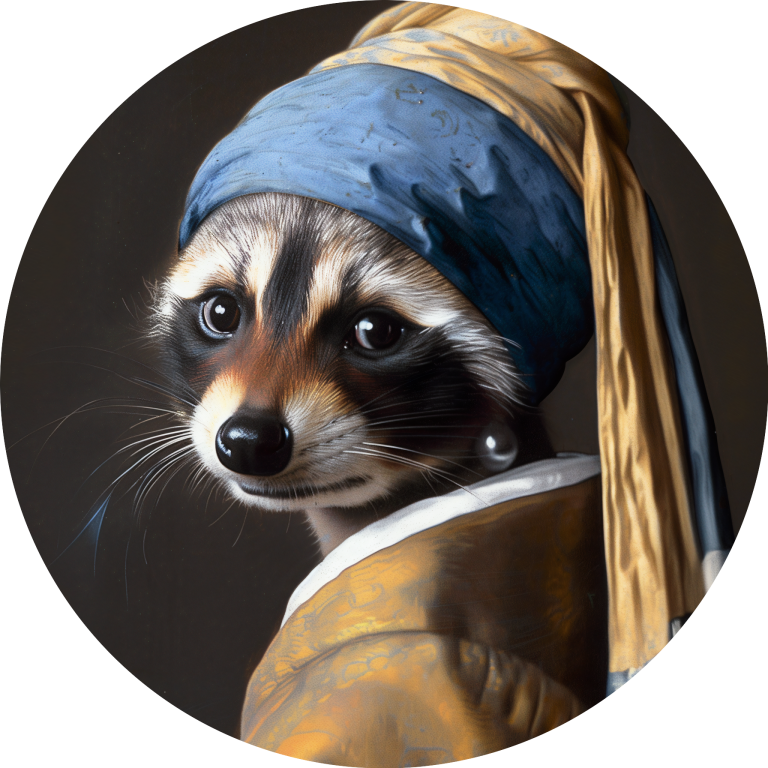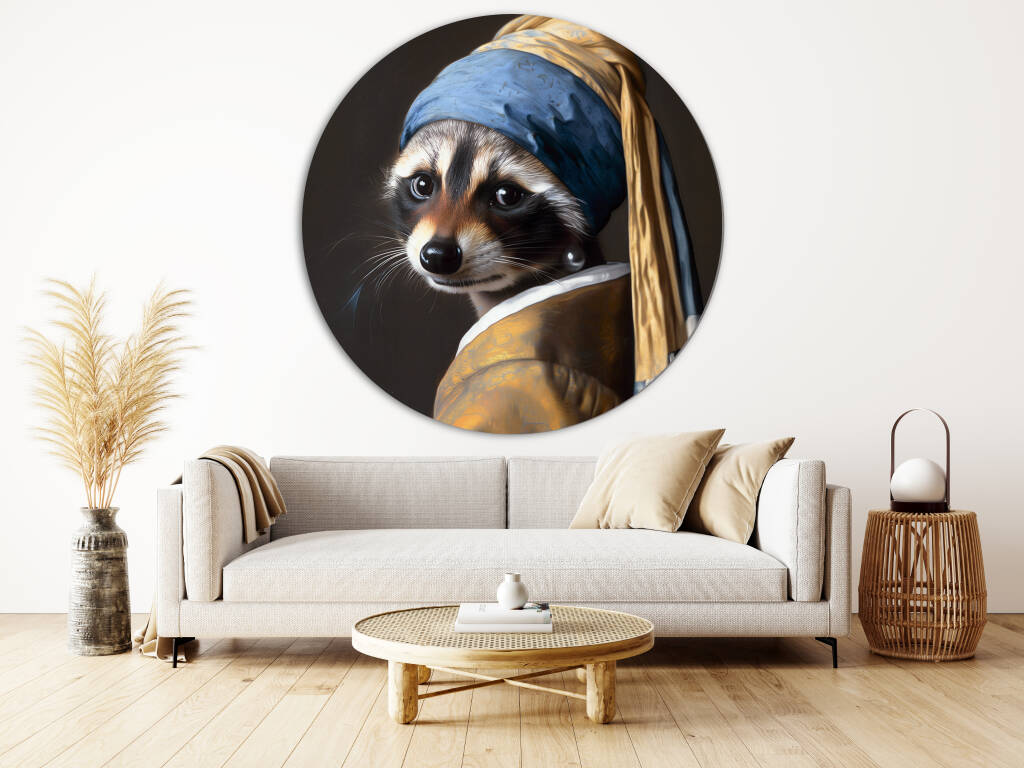 Pearly Raccoon presenteert een charmante hommage aan Vermeers beroemde Meisje met de Parel, waarbij een schattige wasbeer de plaats inneemt van het iconische model. De klassieke compositie wordt behouden met de karakteristieke blauwe hoofddoek en de mysterieuze parel, terwijl de ondeugende uitdrukking van de wasbeer een humoristische twist toevoegt aan dit tijdloze meesterwerk. De rijke kleuren en de meesterlijke lichtval tonen respect voor de originele schildertechniek. Dit speelse kunstwerk combineert klassieke kunstgeschiedenis met moderne humor en brengt een glimlach in elke ruimte.