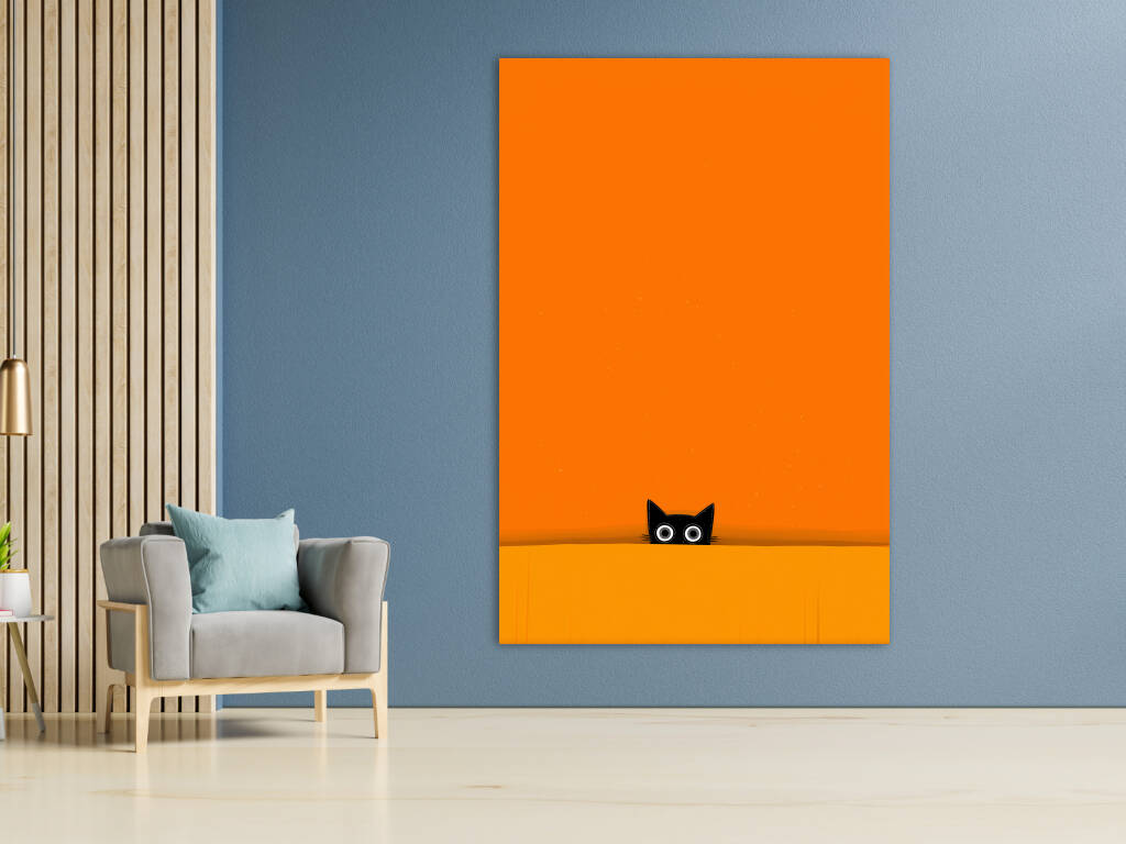 Curious Kitten vangt de onweerstaanbare charme van een zwarte cartoon kat met grote, nieuwsgierige ogen. De minimalistische vlakke illustratie straalt speelsheid en onschuld uit, waarbij de eenvoudige vormen en heldere lijnen een tijdloze aantrekkingskracht hebben. Dit schattige kunstwerk brengt een glimlach op ieders gezicht en is perfect voor kinderkamers of elke ruimte die wat speelse vrolijkheid kan gebruiken.