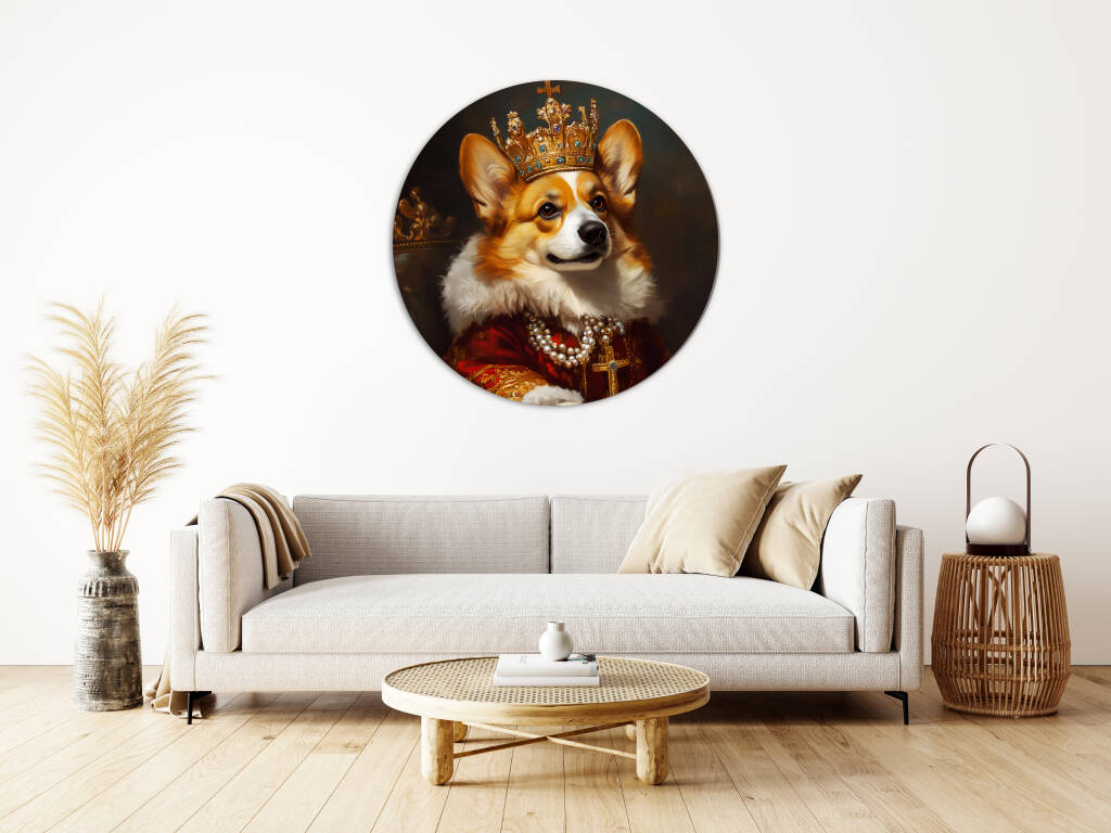 De diepe, klassieke kleuren en verfijnde details geven dit kunstwerk een tijdloze uitstraling, perfect passend in een stijlvol interieur. Of je nu een dierenliefhebber bent of op zoek bent naar een statement piece met een humoristische twist, Corgi Queen brengt een speelse en verfijnde sfeer in elke ruimte.
