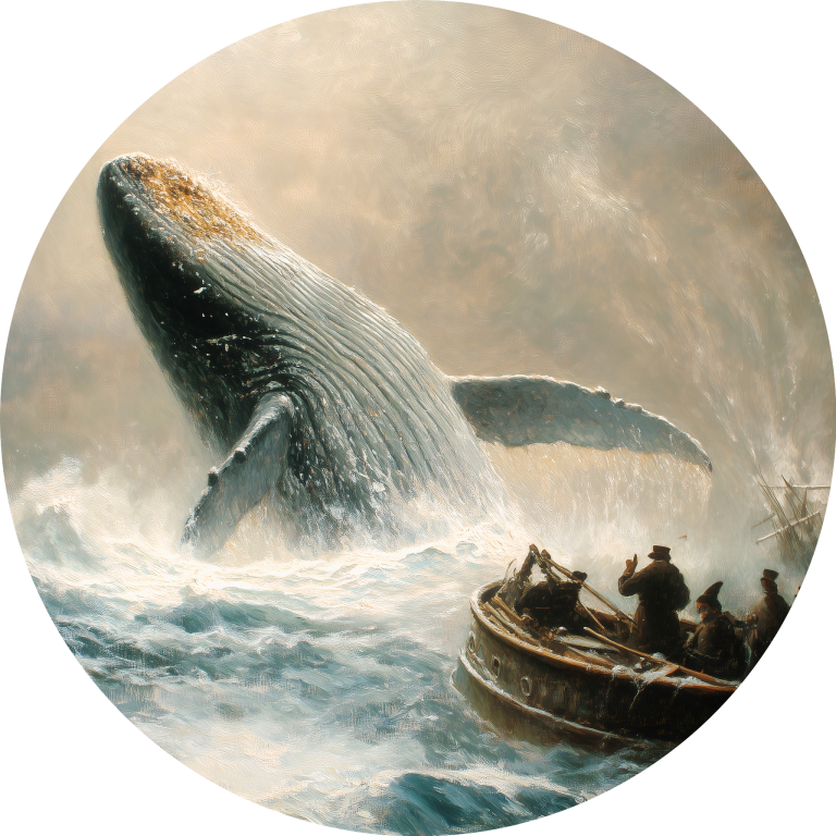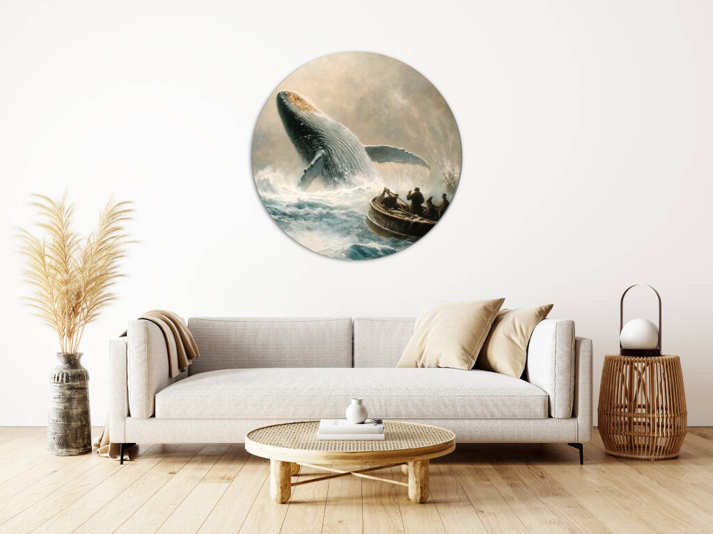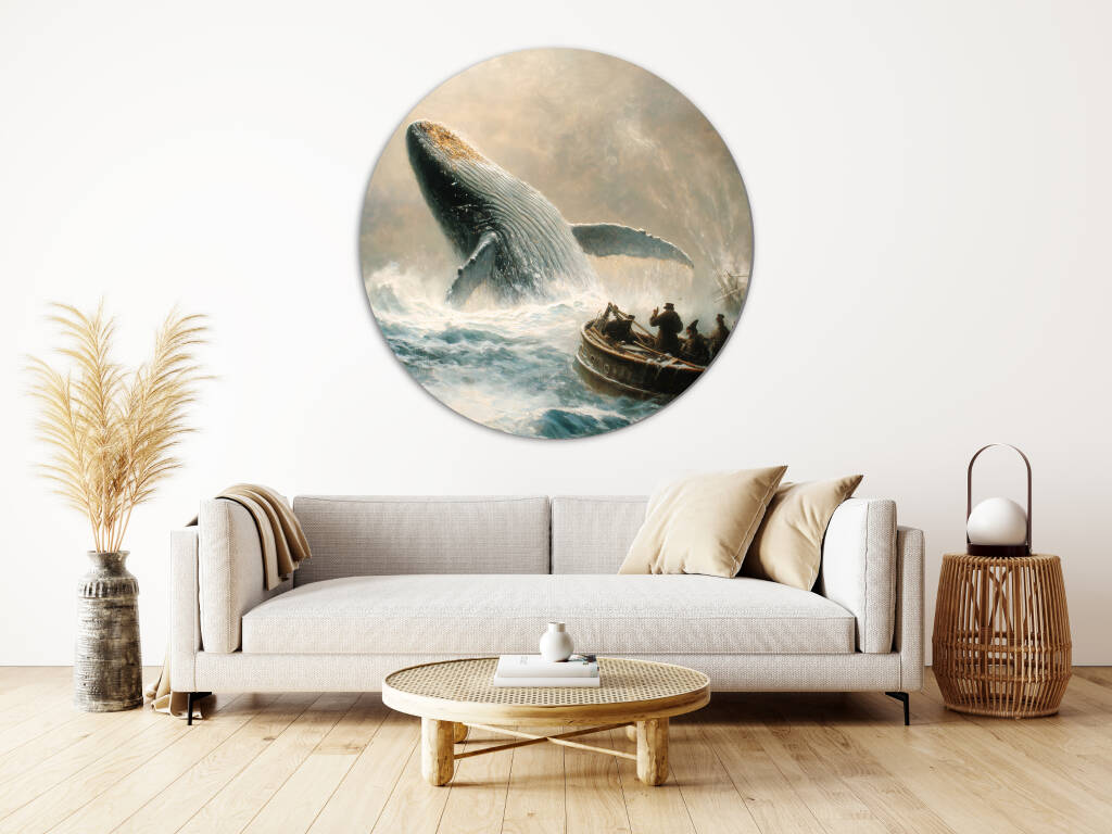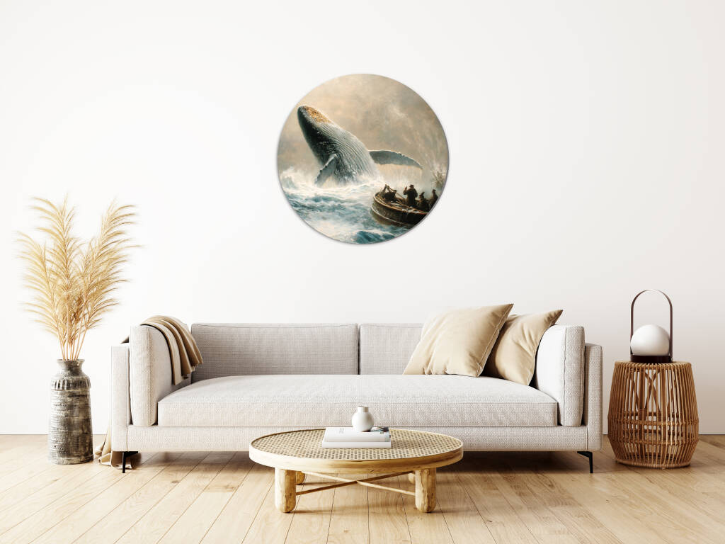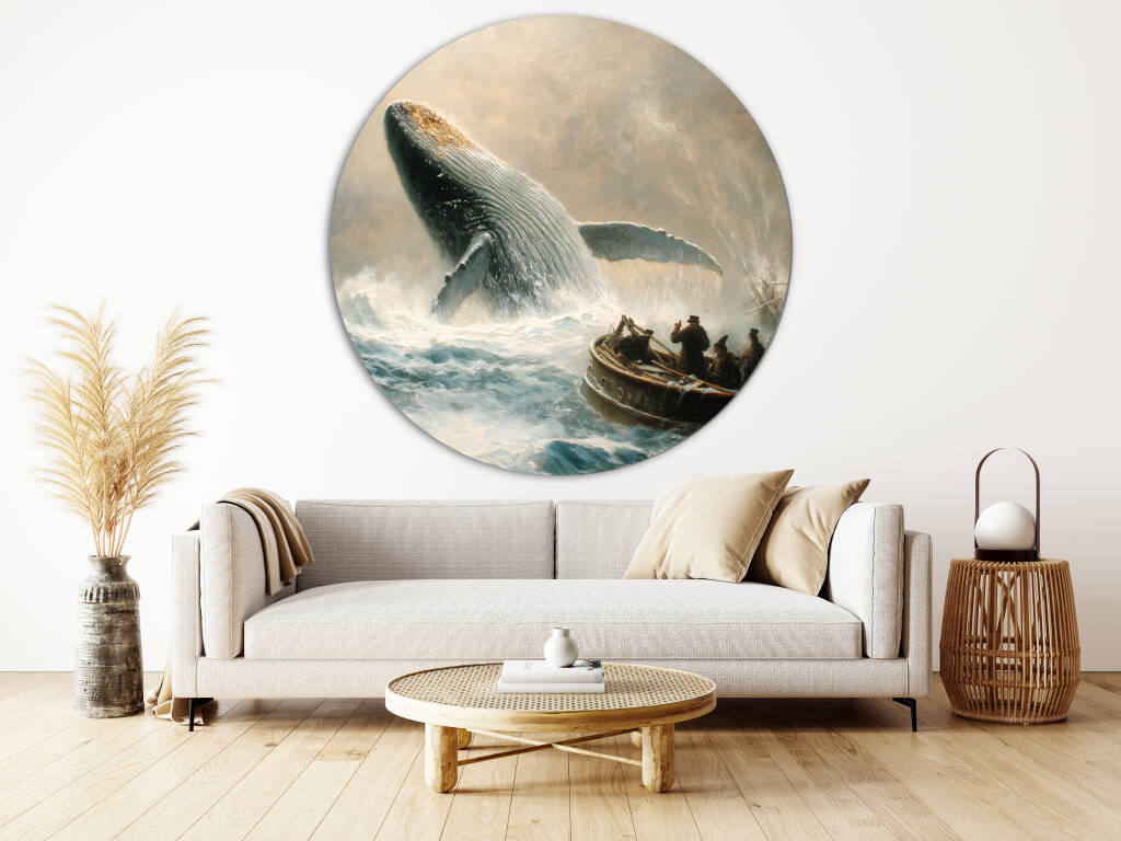 Whaling toont een dramatisch moment uit de maritieme geschiedenis waarin mens en natuur in een epische confrontatie verwikkeld zijn. Een kolossale walvis rijst op uit de woeste zee, zijn machtige lichaam doorbreekt de golven terwijl een kleine sloep met walvisvaarders gevaarlijk dichtbij komt. De stormachtige hemel en woelige zee versterken het gevoel van gevaar en ontzag voor de krachten van de natuur. Dit historische tafereel documenteert een tijd waarin de walvisvaart een belangrijke industrie was, maar roept ook reflectie op over de relatie tussen mens en natuur. Het contrast tussen de kwetsbare boot en het immense zeezoogdier benadrukt zowel menselijke moed als de grootsheid van het oceaanleven. Een krachtig kunstwerk dat zowel avontuur als contemplatie oproept.